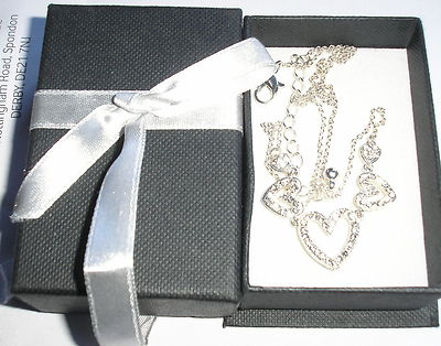 THIS LOT BEING FOR A DECORATIVE HEART PENDANT AND MATCHING SILVER COLOURED NECKLACE IN GIFT BOX.