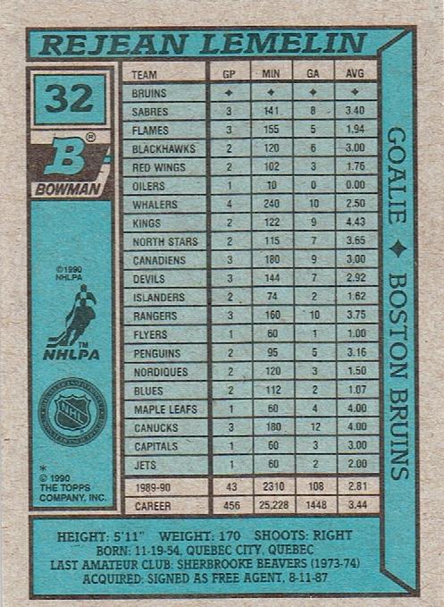1990-91 Bowman #32 Rejean Lemelin