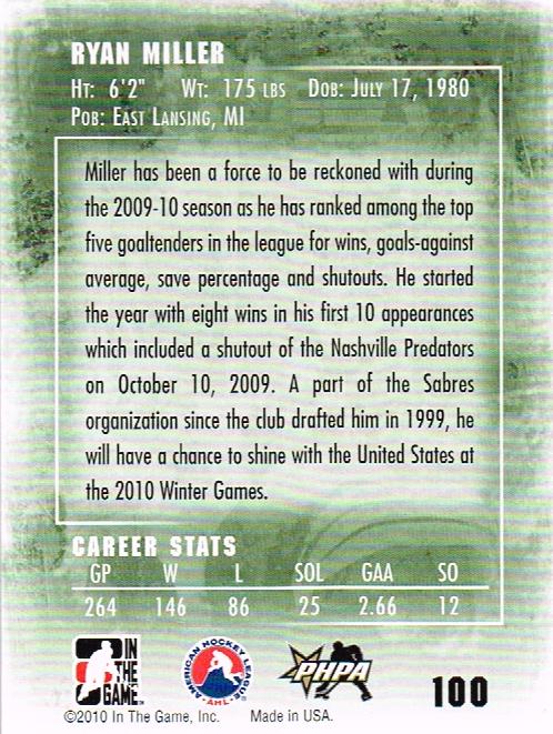 2009-10 Between The Pipes #100 Ryan Miller