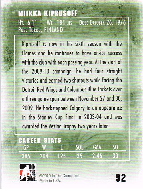 2009-10 Between The Pipes #92 Miikka Kiprusoff