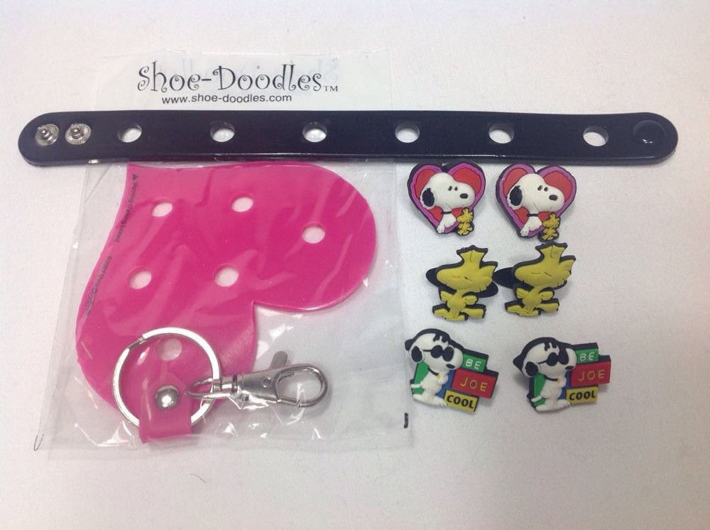 6 Snoopy and Woodstock shoe charms for Crocs shoe-doodles Jibbitz. Also included is a key chain and bracelet you can put the charms on.
