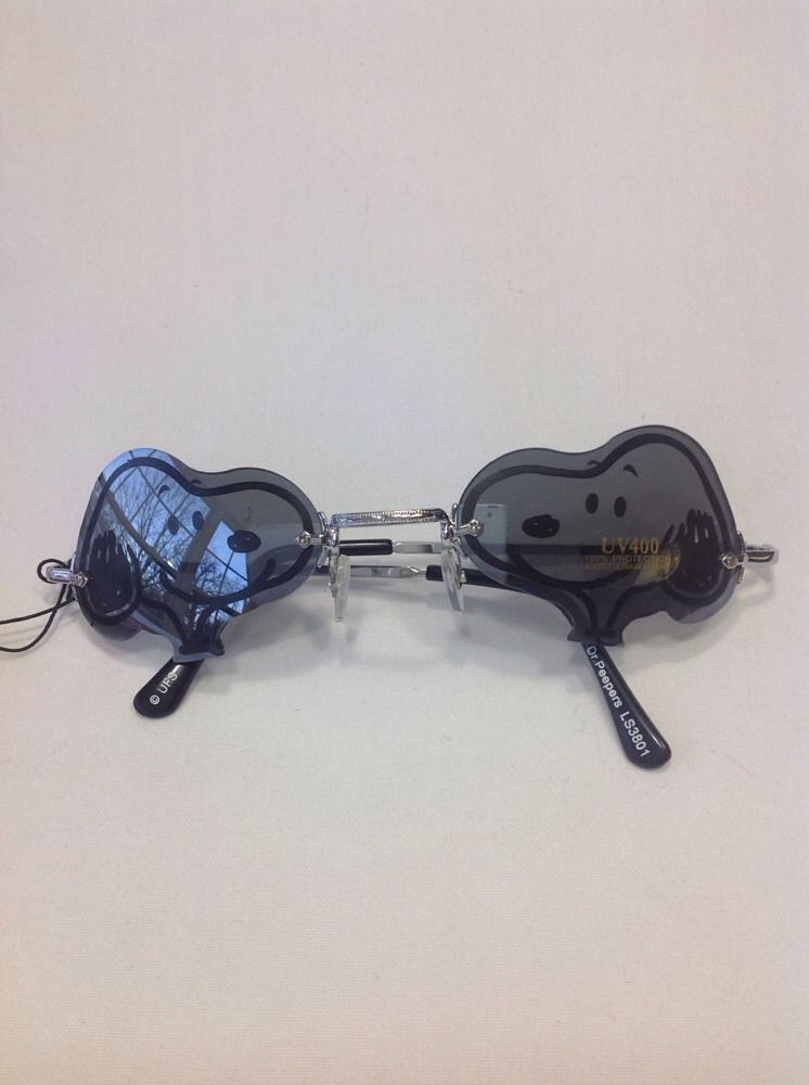 Put a smile on everyone's face that sees you in these Snoopy head adult size sunglasses. The outline of Snoopy's head does block your vision a little so they are just for fun. The lens are plastic and UV 400. The arms and bridge are metal.