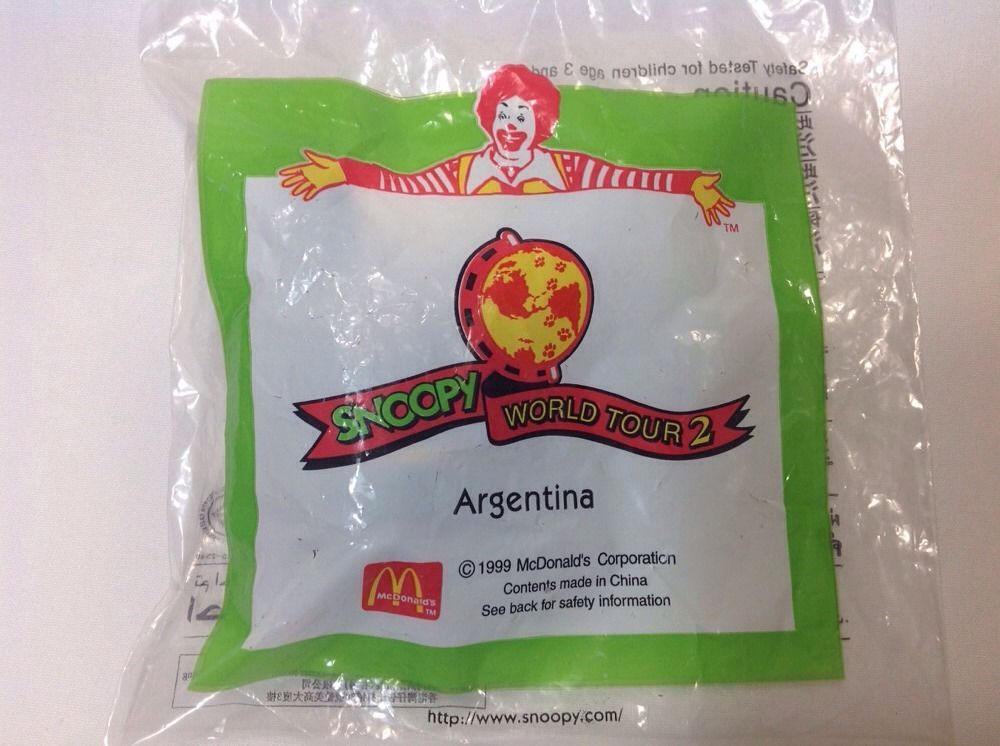 McDonald's Peanuts Happy Meal Toy. Snoopy World Tour 2, ARGENTINA. About 3.25" tall, plastic.