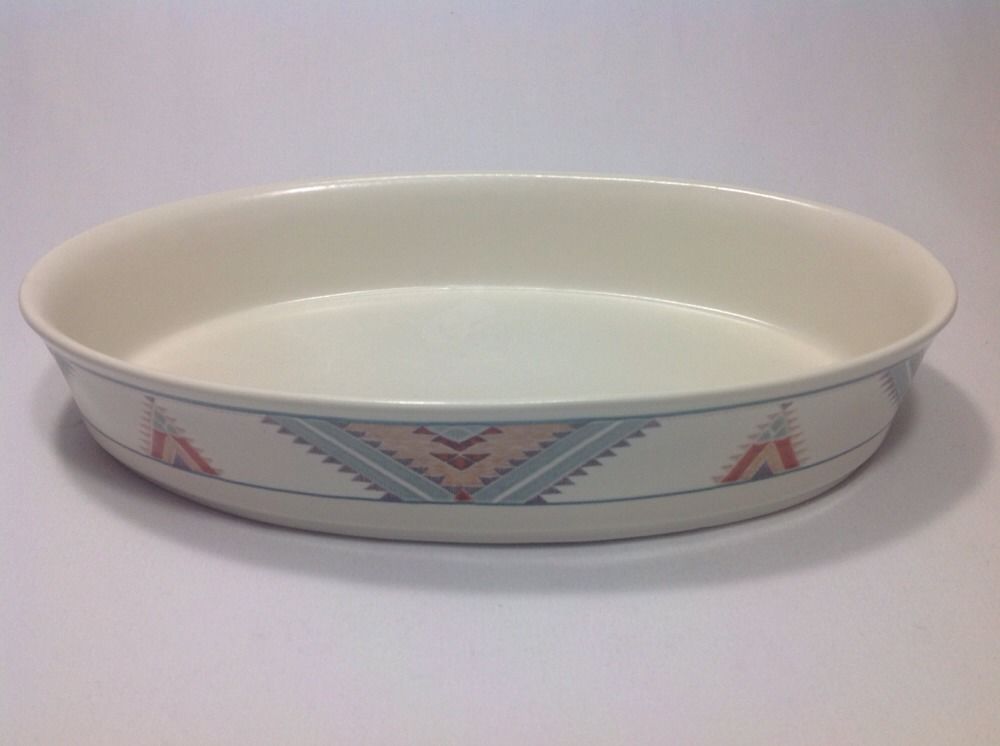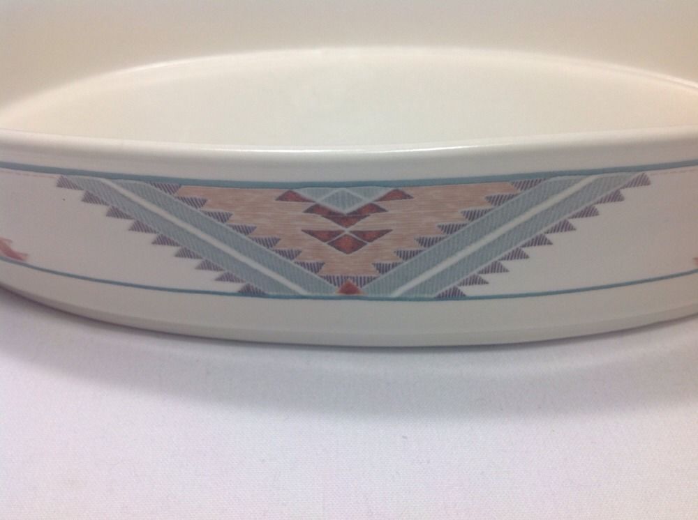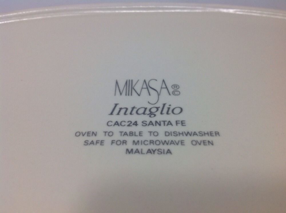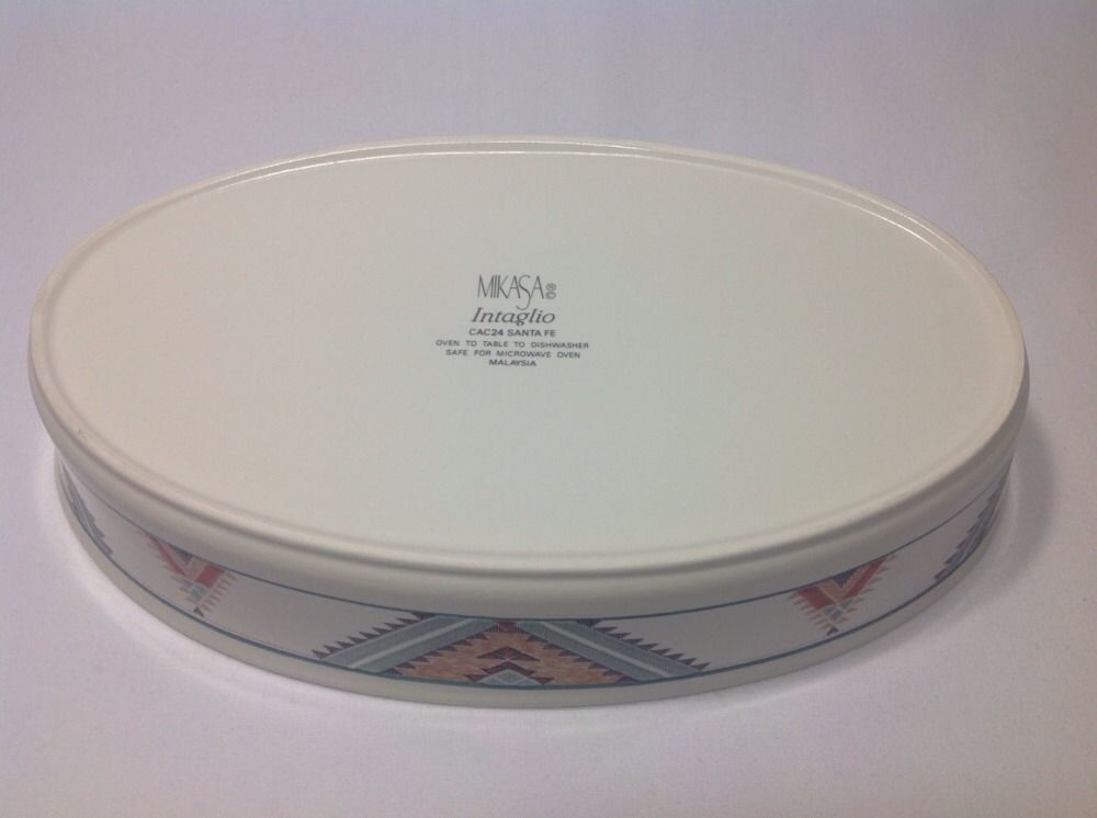 Mikasa Intaglio Santa Fe CAC24 Oval Baker. Discontinued pattern, active from 1987 - 2000. Baker was never used. I purchased new from a Mikasa store several years ago, washed, and stored it. Top edge to top edge measures about 12 1/8" long. Bottom reads Oven To Table To Dishwasher. Safe For Microwave.