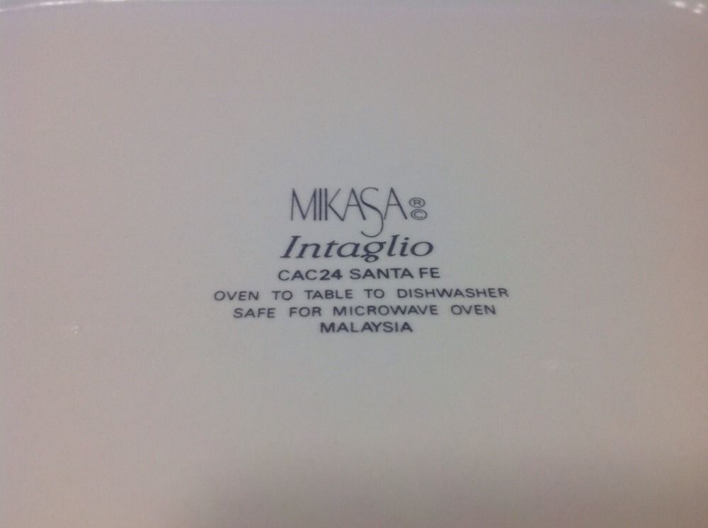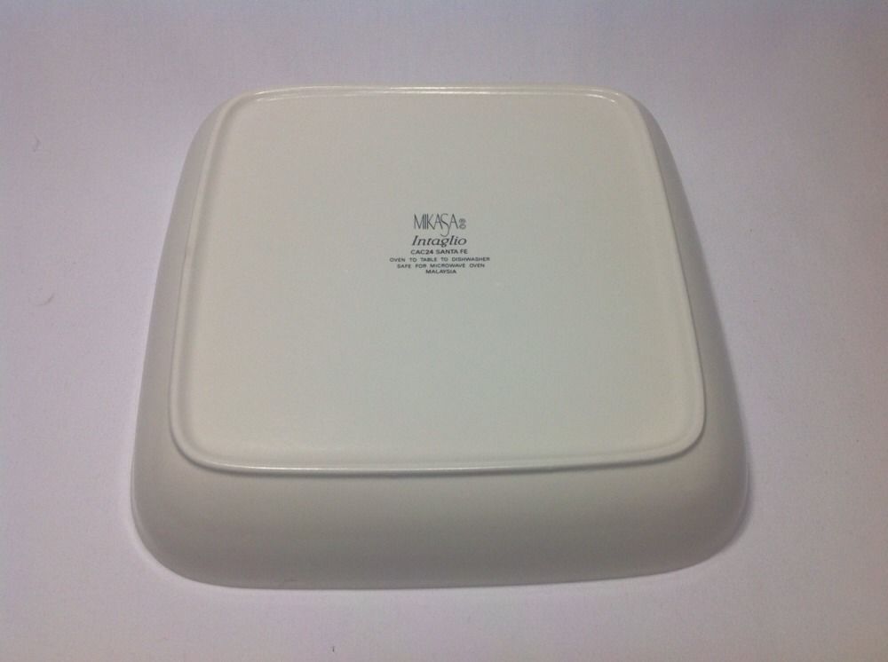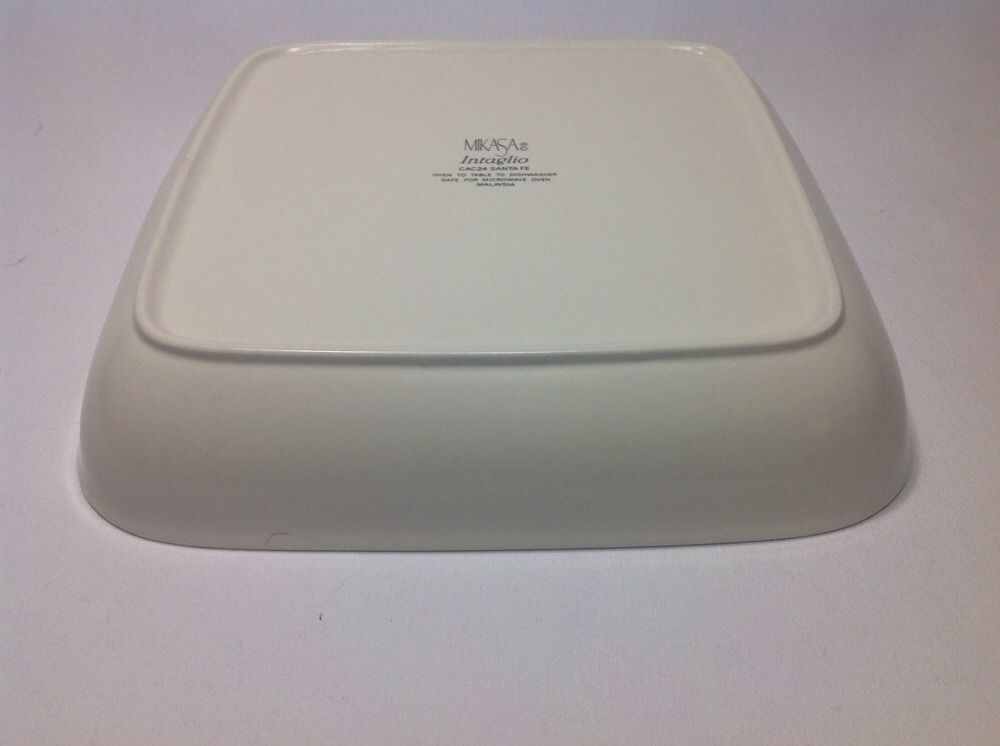 Mikasa Intaglio Santa Fe CAC24 Square Baker. Discontinued pattern, active from 1987 - 2000. Baker was never used. I purchased new from a Mikasa store several years ago, washed, and stored it. Top edge to top edge measures about 10.5" across. Bottom reads Oven To Table To Dishwasher. Safe For Microwave.