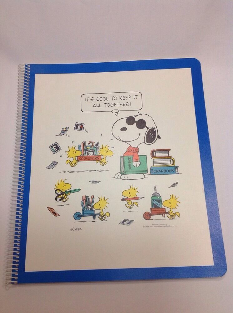 Older Hallmark spiral scrapbook album. Cover has Peanuts by Schulz Snoopy as Joe Cool and Woodstock and reads It's Cool to Keep it all Together. Inside pages are blank and measure about 12.25" tall and 10.25 wide. In original box which does show some wear and some of the glue is not holding on the inside of the box, see pictures.