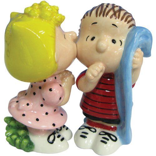 New in box Sally and Linus with his blanket, salt and pepper shakers. This is a cute set that stands 3.5" tall. Shakers have a nice shinny ceramic finish and a small magnet that attract them to each other. Ships Priority Mail in the US. Westland 18280