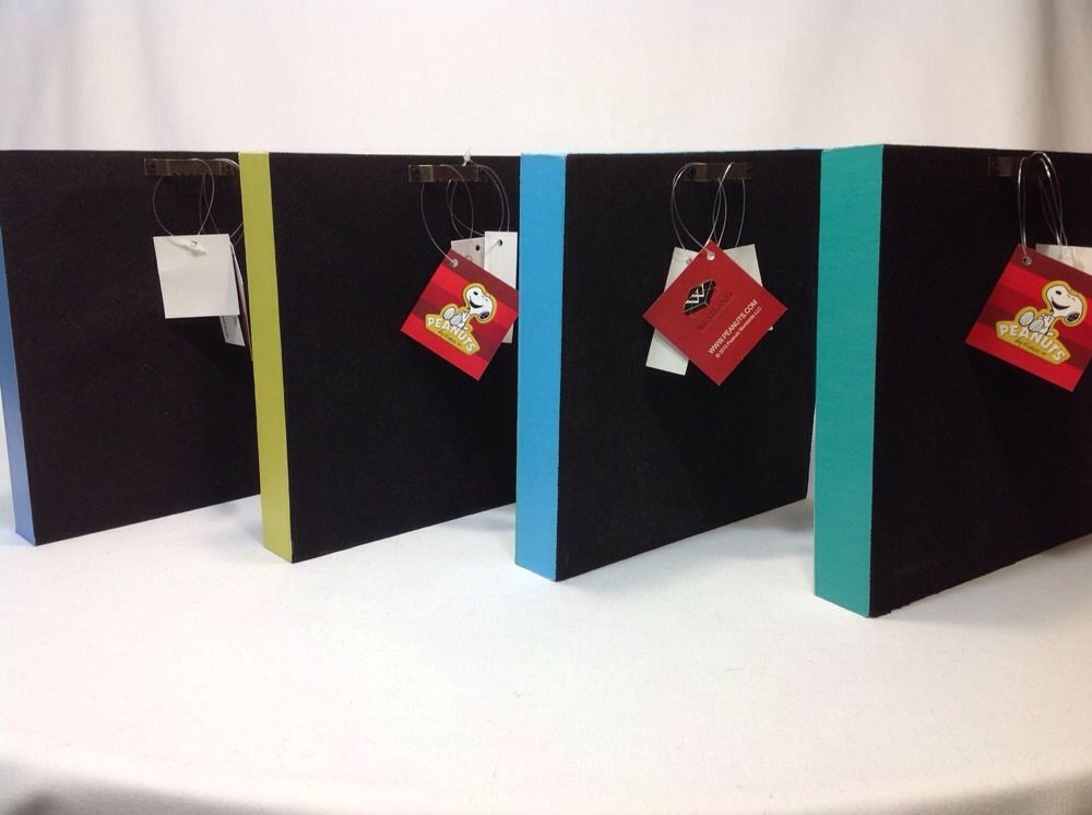Set of 4 canvas wall art featuring Peanuts characters Snoopy, Charlie Brown, Woodstock and Joe Cool. Each printed canvas is glued on to a wood frame that measures 8" x 8" and 1.25" deep/thick with a hook on the back to hang it.