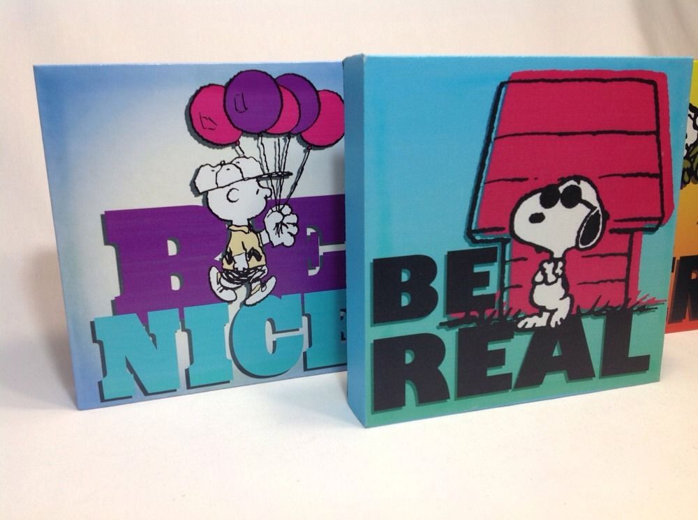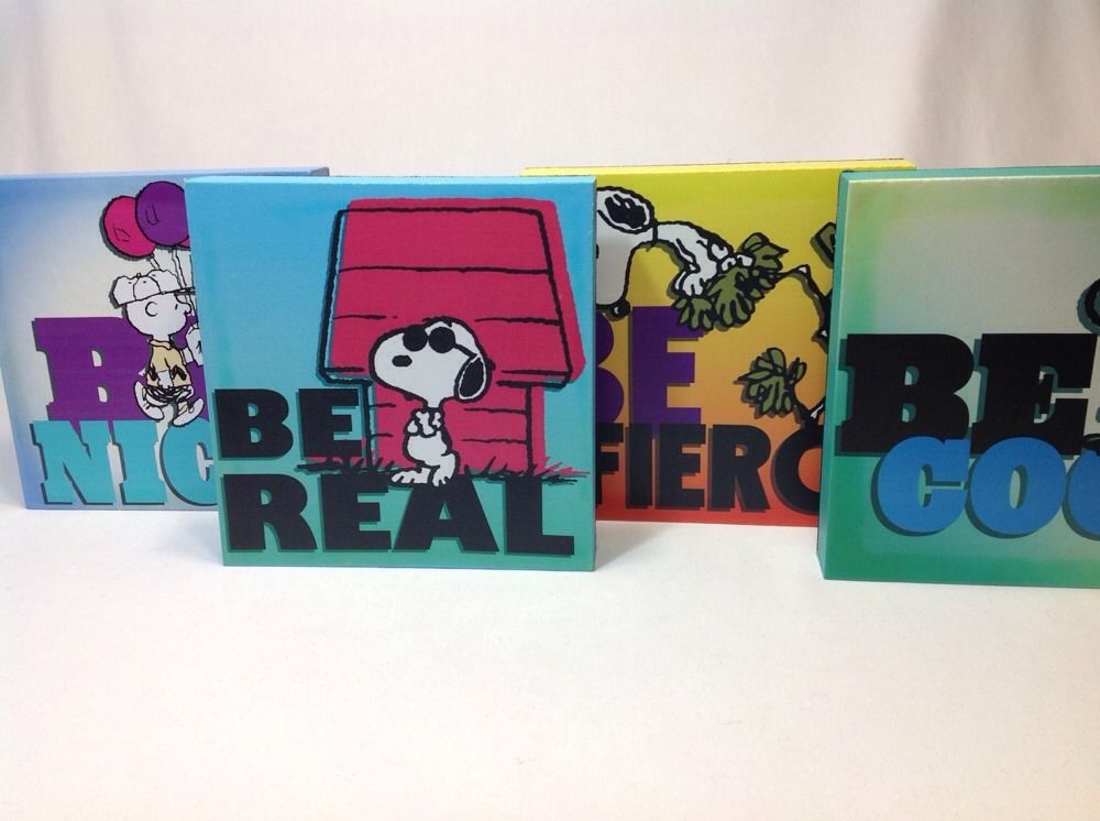 Set of 4 Peanuts Canvas Wall Art 8" x 8" Snoopy Joe Cool Charlie Brown Woodstock