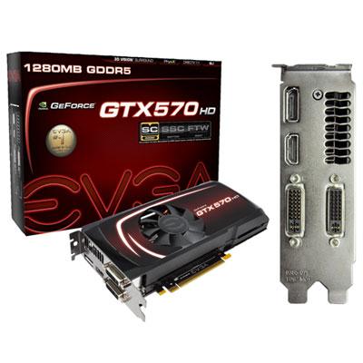 EVGA GeForce GTX570 HD Superclocked SPECS: Core Clock: 797 MHz Memory Clock: 3900 MHz Effective Shadder Clock: 1594 MHz CUDA Cores: 480 Bus Type: PCI-E 2.0 Memory Detail: 1280MB GDDR5 Memory Bit Width: 320 Bit Memory Speed: 0.5 ns Memory Bandwidth: 156 GB/sec Texture Fill Rate: 47.8 GT/s