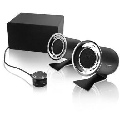 The Soundscience Rockus 3D 2.1 speaker system creates a personal theater experience for all your music game and movie sound. Utilizing our 3Dsst audio technology the Rockus 3D 2.1 speaker system creates realistic immersive 3D sound for your movies and games. Switch Rockus into music mode and you?ll hear audio optimized for superb stereo sound reproduction. Power:Total 150 Watts Satellites 25 x2 SubWoofer 100W. Inputs: 3.5mm RCA and Optical.