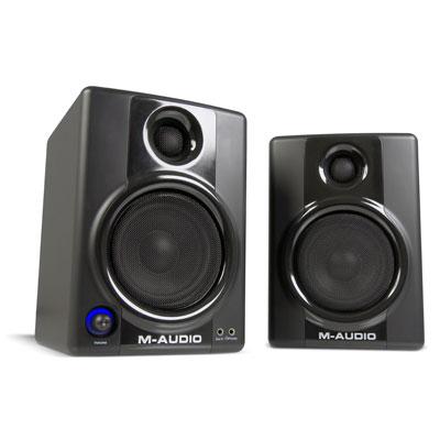 M-Audio Studiophile AV40 Speakers - Pair - deliver the same proven M-Audio technology favored by top producers recording engineers and musicians around the world. Custom cabinets with dense wood construction deliver more accurate bass response than you could ever get from plastic multimedia speakers -- the perfect solution for traveling musicians or anyone who wants top-notch sound from their desktop multimedia system.