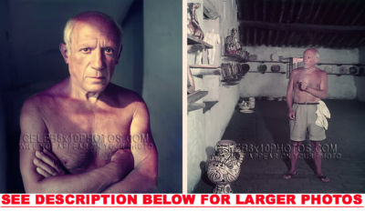 YOUARE PURCHASING 2 CANDID & RARE PABLO PICASSO 1949 WORKING SHIRTLESS (2) 8x10 FINE ART PHOTOS The (2) 8x10 Candid & Fine Art Photos you will receive, (shown below) are from a Private Collection. COPYRIGHTS: (please see bottom of thispage) These Candid, One of a kind pictures are Professionally photo-printed utilizing the GICLEE printing process onto GALERIE SmoothGloss Archival & Acid-free High Resolution Photo-Lab quality paper. As well, we use only Giclee pressheated Archival Printing Inks. This is Kodak's most expensive Ink, which creates higher & more vivid quality Photos & longer lasting prints than any other Photographic Ink in the world!! This Ultra Premium Kodak Super Color/Photo Gloss Pigment Based Printing Ink also shields photos from the key factors that lead to fading such as light, air, pollution, moisture and heat. This is due to the Spectacularly Innovative "colorlast" technology applied to this KodakPIGMENTInk, which allows your Photos to virtually resist any picture fading for at least 100 years. Meaning, the vibrant colors in the Photos you see below will be the exact same vibrant colors your descendants will see when viewing your Photos 100 years from now! NOTE PLEASE** WE ARE ALWAYS LISTING DIFFERENT PABLO PICASSO PHOTOS & PHOTO CREATIONS. IFYOU WOULD LIKE TO BE NOTIFIED THE NEXT TIME WE LIST MORE UNIQUE AND DIFFERENT PHOTOS OF PABLO PICASSO PLEASE EMAIL US  8x10 PHOTO#1 8x10 PHOTO#2 CLICK HERE TO VIEW MORE PABLO PICASSO 8x10PHOTOS!
