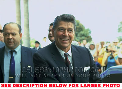 YOU ARE PURCHASING 1 CANDID & RARE RONALD REAGAN 1968 onCampaign Trail (1) 8x10 FINE ART PHOTO The (1) 8x10 Candid & Fine Art Photo you will receive, (shown below) is from a Private Collection. COPYRIGHTS: (please see bottom of thispage) This Candid, One of a kind picture is Professionally photo-printed utilizing the GICLEE printing process onto GALERIE SmoothGloss Archival & Acid-free High Resolution Photo-Lab quality paper. As well, we use only Giclee pressheated Archival Printing Inks. This is Kodak's most expensive Ink, which creates higher & more vivid quality Photos & longer lasting prints than any other Photographic Ink in the world!! This Ultra Premium Kodak Super Color/Photo Gloss Pigment Based Printing Ink also shields photos from the key factors that lead to fading such as light, air, pollution, moisture and heat. This is due to the Spectacularly Innovative "colorlast" technology applied to this KodakPIGMENTInk, which allows your Photo to virtually resist any picture fading for at least 100 years. Meaning, the vibrant colors in the Photo you see below will be the exact same vibrant colors your descendants will see when viewing your Photo 100 years from now! NOTE PLEASE** WE ARE ALWAYS LISTING DIFFERENT RONALD REAGAN PHOTOS & PHOTO CREATIONS. IFYOU WOULD LIKE TO BE NOTIFIED THE NEXT TIME WE LIST MORE UNIQUE AND DIFFERENT PHOTOS OF RONALD REAGAN PLEASE EMAIL US  8x10 PHOTO#1 CLICK HERE TO VIEW MORE RONALD REAGAN 8x10PHOTOS!