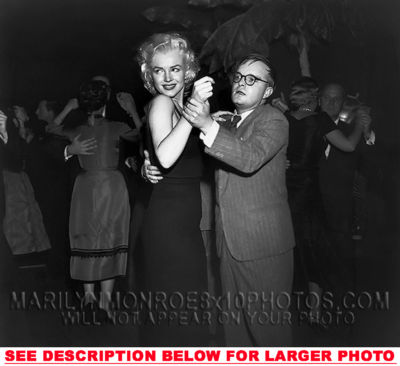YOU ARE PURCHASING 1 CANDID & RARE MARILYN MONROE DANCING with TRUMAN (1) 8x10 FINE ART PHOTO The (1) 8x10 Candid & Fine Art Photo you will receive, (shown below) is from a Private Collection. COPYRIGHTS: (please see bottom of thispage) This Candid, One of a kind picture is Professionally photo-printed utilizing the GICLEE printing process onto GALERIE SmoothGloss Archival & Acid-free High Resolution Photo-Lab quality paper. As well, we use only Giclee pressheated Archival Printing Inks. This is Kodak's most expensive Ink, which creates higher & more vivid quality Photos & longer lasting prints than any other Photographic Ink in the world!! This Ultra Premium Kodak Super Color/Photo Gloss Pigment Based Printing Ink also shields photos from the key factors that lead to fading such as light, air, pollution, moisture and heat. This is due to the Spectacularly Innovative "colorlast" technology applied to this KodakPIGMENTInk, which allows your Photo to virtually resist any picture fading for at least 100 years. Meaning, the vibrant colors in the Photo you see below will be the exact same vibrant colors your descendants will see when viewing your Photo 100 years from now! NOTE PLEASE** WE ARE ALWAYS LISTING DIFFERENT MARILYN MONROE PHOTOS & PHOTO CREATIONS. IFYOU WOULD LIKE TO BE NOTIFIED THE NEXT TIME WE LIST MORE UNIQUE AND DIFFERENT PHOTOS OF MARILYN MONROE PLEASE EMAIL US  8x10 PHOTO#1 CLICK HERE TO VIEW MORE MARILYN MONROE 8x10PHOTOS!
