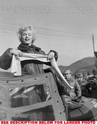 YOU ARE PURCHASING 1 CANDID & RARE MARILYN MONROE In Jeep in KOREA (1) 8x10 FINE ART PHOTO The (1) 8x10 Candid & Fine Art Photo you will receive, (shown below) is from a Private Collection. COPYRIGHTS: (please see bottom of thispage) This Candid, One of a kind picture is Professionally photo-printed utilizing the GICLEE printing process onto GALERIE SmoothGloss Archival & Acid-free High Resolution Photo-Lab quality paper. As well, we use only Giclee pressheated Archival Printing Inks. This is Kodak's most expensive Ink, which creates higher & more vivid quality Photos & longer lasting prints than any other Photographic Ink in the world!! This Ultra Premium Kodak Super Color/Photo Gloss Pigment Based Printing Ink also shields photos from the key factors that lead to fading such as light, air, pollution, moisture and heat. This is due to the Spectacularly Innovative "colorlast" technology applied to this KodakPIGMENTInk, which allows your Photo to virtually resist any picture fading for at least 100 years. Meaning, the vibrant colors in the Photo you see below will be the exact same vibrant colors your descendants will see when viewing your Photo 100 years from now! NOTE PLEASE** WE ARE ALWAYS LISTING DIFFERENT MARILYN MONROE PHOTOS & PHOTO CREATIONS. IFYOU WOULD LIKE TO BE NOTIFIED THE NEXT TIME WE LIST MORE UNIQUE AND DIFFERENT PHOTOS OF MARILYN MONROE PLEASE EMAIL US  8x10 PHOTO#1 CLICK HERE TO VIEW MORE MARILYN MONROE 8x10PHOTOS!