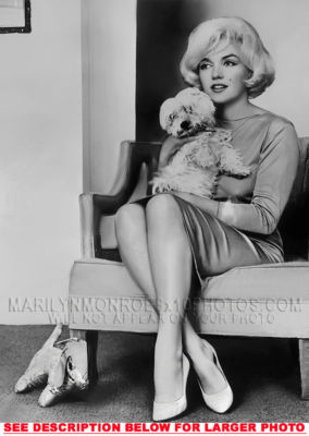 YOU ARE PURCHASING 1 CANDID & RARE MARILYN MONROE INTERVIEW with DOGGIE (1) 8x10 FINE ART PHOTO The (1) 8x10 Candid & Fine Art Photo you will receive, (shown below) is from a Private Collection. COPYRIGHTS: (please see bottom of thispage) This Candid, One of a kind picture is Professionally photo-printed utilizing the GICLEE printing process onto GALERIE SmoothGloss Archival & Acid-free High Resolution Photo-Lab quality paper. As well, we use only Giclee pressheated Archival Printing Inks. This is Kodak's most expensive Ink, which creates higher & more vivid quality Photos & longer lasting prints than any other Photographic Ink in the world!! This Ultra Premium Kodak Super Color/Photo Gloss Pigment Based Printing Ink also shields photos from the key factors that lead to fading such as light, air, pollution, moisture and heat. This is due to the Spectacularly Innovative "colorlast" technology applied to this KodakPIGMENTInk, which allows your Photo to virtually resist any picture fading for at least 100 years. Meaning, the vibrant colors in the Photo you see below will be the exact same vibrant colors your descendants will see when viewing your Photo 100 years from now! NOTE PLEASE** WE ARE ALWAYS LISTING DIFFERENT MARILYN MONROE PHOTOS & PHOTO CREATIONS. IFYOU WOULD LIKE TO BE NOTIFIED THE NEXT TIME WE LIST MORE UNIQUE AND DIFFERENT PHOTOS OF MARILYN MONROE PLEASE EMAIL US  8x10 PHOTO#1 CLICK HERE TO VIEW MORE MARILYN MONROE 8x10PHOTOS!