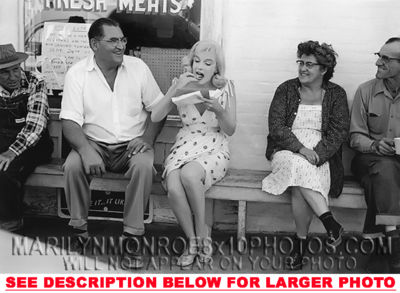 YOU ARE PURCHASING 1 CANDID & RARE MARILYN MONROE MISFITS EATING&READING (1) 8x10 FINE ART PHOTO The (1) 8x10 Candid & Fine Art Photo you will receive, (shown below) is from a Private Collection. COPYRIGHTS: (please see bottom of thispage) This Candid, One of a kind picture is Professionally photo-printed utilizing the GICLEE printing process onto GALERIE SmoothGloss Archival & Acid-free High Resolution Photo-Lab quality paper. As well, we use only Giclee pressheated Archival Printing Inks. This is Kodak's most expensive Ink, which creates higher & more vivid quality Photos & longer lasting prints than any other Photographic Ink in the world!! This Ultra Premium Kodak Super Color/Photo Gloss Pigment Based Printing Ink also shields photos from the key factors that lead to fading such as light, air, pollution, moisture and heat. This is due to the Spectacularly Innovative "colorlast" technology applied to this KodakPIGMENTInk, which allows your Photo to virtually resist any picture fading for at least 100 years. Meaning, the vibrant colors in the Photo you see below will be the exact same vibrant colors your descendants will see when viewing your Photo 100 years from now! NOTE PLEASE** WE ARE ALWAYS LISTING DIFFERENT MARILYN MONROE PHOTOS & PHOTO CREATIONS. IFYOU WOULD LIKE TO BE NOTIFIED THE NEXT TIME WE LIST MORE UNIQUE AND DIFFERENT PHOTOS OF MARILYN MONROE PLEASE EMAIL US  8x10 PHOTO#1 CLICK HERE TO VIEW MORE MARILYN MONROE 8x10PHOTOS!