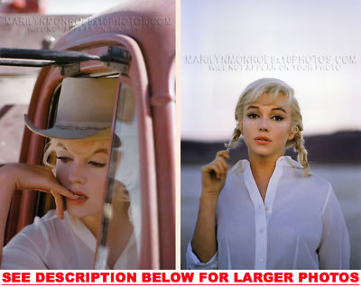 YOUARE PURCHASING 2 CANDID & RARE MARILYN MONROE MISFITS OFFSET (2) 8x10 FINE ART PHOTOS The (2) 8x10 Candid & Fine Art Photos you will receive, (shown below) are from a Private Collection. COPYRIGHTS: (please see bottom of thispage) These Candid, One of a kind pictures are Professionally photo-printed utilizing the GICLEE printing process onto GALERIE SmoothGloss Archival & Acid-free High Resolution Photo-Lab quality paper. As well, we use only Giclee pressheated Archival Printing Inks. This is Kodak's most expensive Ink, which creates higher & more vivid quality Photos & longer lasting prints than any other Photographic Ink in the world!! This Ultra Premium Kodak Super Color/Photo Gloss Pigment Based Printing Ink also shields photos from the key factors that lead to fading such as light, air, pollution, moisture and heat. This is due to the Spectacularly Innovative "colorlast" technology applied to this KodakPIGMENTInk, which allows your Photos to virtually resist any picture fading for at least 100 years. Meaning, the vibrant colors in the Photos you see below will be the exact same vibrant colors your descendants will see when viewing your Photos 100 years from now! NOTE PLEASE** WE ARE ALWAYS LISTING DIFFERENT MARILYN MONROE PHOTOS & PHOTO CREATIONS. IFYOU WOULD LIKE TO BE NOTIFIED THE NEXT TIME WE LIST MORE UNIQUE AND DIFFERENT PHOTOS OF MARILYN MONROE PLEASE EMAIL US  8x10 PHOTO#1 8x10 PHOTO#2 CLICK HERE TO VIEW MORE MARILYN MONROE 8x10PHOTOS!