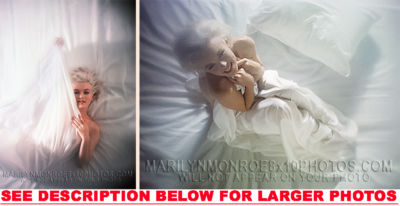 YOUARE PURCHASING 2 CANDID & RARE MARILYN MONROE NUDE BETWEEN SHEETS (2) 8x10 FINE ART PHOTOS The (2) 8x10 Candid & Fine Art Photos you will receive, (shown below) are from a Private Collection. COPYRIGHTS: (please see bottom of thispage) These Candid, One of a kind pictures are Professionally photo-printed utilizing the GICLEE printing process onto GALERIE SmoothGloss Archival & Acid-free High Resolution Photo-Lab quality paper. As well, we use only Giclee pressheated Archival Printing Inks. This is Kodak's most expensive Ink, which creates higher & more vivid quality Photos & longer lasting prints than any other Photographic Ink in the world!! This Ultra Premium Kodak Super Color/Photo Gloss Pigment Based Printing Ink also shields photos from the key factors that lead to fading such as light, air, pollution, moisture and heat. This is due to the Spectacularly Innovative "colorlast" technology applied to this KodakPIGMENTInk, which allows your Photos to virtually resist any picture fading for at least 100 years. Meaning, the vibrant colors in the Photos you see below will be the exact same vibrant colors your descendants will see when viewing your Photos 100 years from now! NOTE PLEASE** WE ARE ALWAYS LISTING DIFFERENT MARILYN MONROE PHOTOS & PHOTO CREATIONS. IFYOU WOULD LIKE TO BE NOTIFIED THE NEXT TIME WE LIST MORE UNIQUE AND DIFFERENT PHOTOS OF MARILYN MONROE PLEASE EMAIL US  8x10 PHOTO#1 8x10 PHOTO#2 CLICK HERE TO VIEW MORE MARILYN MONROE 8x10PHOTOS!