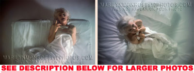 YOUARE PURCHASING 2 CANDID & RARE MARILYN MONROE NUDE BETWEEN THESHEETS (2) 8x10 FINE ART PHOTOS The (2) 8x10 Candid & Fine Art Photos you will receive, (shown below) are from a Private Collection. COPYRIGHTS: (please see bottom of thispage) These Candid, One of a kind pictures are Professionally photo-printed utilizing the GICLEE printing process onto GALERIE SmoothGloss Archival & Acid-free High Resolution Photo-Lab quality paper. As well, we use only Giclee pressheated Archival Printing Inks. This is Kodak's most expensive Ink, which creates higher & more vivid quality Photos & longer lasting prints than any other Photographic Ink in the world!! This Ultra Premium Kodak Super Color/Photo Gloss Pigment Based Printing Ink also shields photos from the key factors that lead to fading such as light, air, pollution, moisture and heat. This is due to the Spectacularly Innovative "colorlast" technology applied to this KodakPIGMENTInk, which allows your Photos to virtually resist any picture fading for at least 100 years. Meaning, the vibrant colors in the Photos you see below will be the exact same vibrant colors your descendants will see when viewing your Photos 100 years from now! NOTE PLEASE** WE ARE ALWAYS LISTING DIFFERENT MARILYN MONROE PHOTOS & PHOTO CREATIONS. IFYOU WOULD LIKE TO BE NOTIFIED THE NEXT TIME WE LIST MORE UNIQUE AND DIFFERENT PHOTOS OF MARILYN MONROE PLEASE EMAIL US  8x10 PHOTO#1 8x10 PHOTO#2 CLICK HERE TO VIEW MORE MARILYN MONROE 8x10PHOTOS!