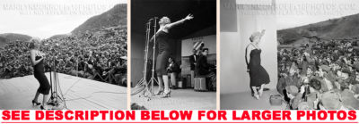 YOU ARE PURCHASING 3 CANDID & RARE MARILYN MONROE On Stage in KOREA (3) 8x10 FINE ART PHOTOS The (3) 8x10 Candid & Fine Art Photos you will receive, (shown below) are from a Private Collection. COPYRIGHTS: (please see bottom of thispage) These Candid, One of a kind pictures are Professionally photo-printed utilizing the GICLEE printing process onto GALERIE SmoothGloss Archival & Acid-free High Resolution Photo-Lab quality paper. As well, we use only Giclee pressheated Archival Printing Inks. This is Kodak's most expensive Ink, which creates higher & more vivid quality Photos & longer lasting prints than any other Photographic Ink in the world!! This Ultra Premium Kodak Super Color/Photo Gloss Pigment Based Printing Ink also shields photos from the key factors that lead to fading such as light, air, pollution, moisture and heat. This is due to the Spectacularly Innovative "colorlast" technology applied to this KodakPIGMENTInk, which allows your Photos to virtually resist any picture fading for at least 100 years. Meaning, the vibrant colors in the Photos you see below will be the exact same vibrant colors your descendants will see when viewing your Photos 100 years from now! NOTE PLEASE** WE ARE ALWAYS LISTING DIFFERENT MARILYN MONROE PHOTOS & PHOTO CREATIONS. IFYOU WOULD LIKE TO BE NOTIFIED THE NEXT TIME WE LIST MORE UNIQUE AND DIFFERENT PHOTOS OF MARILYN MONROE PLEASE EMAIL US  8x10 PHOTO#1 8x10 PHOTO#2 8x10 PHOTO#3 CLICK HERE TO VIEW MORE MARILYN MONROE 8x10PHOTOS!