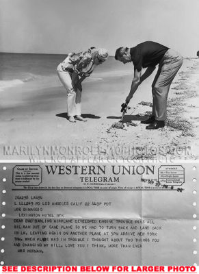 YOU ARE PURCHASING 1 CANDID & RARE MARILYN MONROE ON THE BEACH with JOE (1) 8x10 FINE ART PHOTO The (1) 8x10 Candid & Fine Art Photo you will receive, (shown below) is from a Private Collection. COPYRIGHTS: (please see bottom of thispage) This Candid, One of a kind picture is Professionally photo-printed utilizing the GICLEE printing process onto GALERIE SmoothGloss Archival & Acid-free High Resolution Photo-Lab quality paper. As well, we use only Giclee pressheated Archival Printing Inks. This is Kodak's most expensive Ink, which creates higher & more vivid quality Photos & longer lasting prints than any other Photographic Ink in the world!! This Ultra Premium Kodak Super Color/Photo Gloss Pigment Based Printing Ink also shields photos from the key factors that lead to fading such as light, air, pollution, moisture and heat. This is due to the Spectacularly Innovative "colorlast" technology applied to this KodakPIGMENTInk, which allows your Photo to virtually resist any picture fading for at least 100 years. Meaning, the vibrant colors in the Photo you see below will be the exact same vibrant colors your descendants will see when viewing your Photo 100 years from now! NOTE PLEASE** WE ARE ALWAYS LISTING DIFFERENT MARILYN MONROE PHOTOS & PHOTO CREATIONS. IFYOU WOULD LIKE TO BE NOTIFIED THE NEXT TIME WE LIST MORE UNIQUE AND DIFFERENT PHOTOS OF MARILYN MONROE PLEASE EMAIL US  8x10 PHOTO#1 CLICK HERE TO VIEW MORE MARILYN MONROE 8x10PHOTOS!