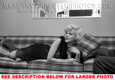 YOU ARE PURCHASING 1 CANDID & RARE MARILYN MONROE ONTHESET of BACKSTAGE (1) 8x10 FINE ART PHOTO The (1) 8x10 Candid & Fine Art Photo you will receive, (shown below) is from a Private Collection. COPYRIGHTS: (please see bottom of thispage) This Candid, One of a kind picture is Professionally photo-printed utilizing the GICLEE printing process onto GALERIE SmoothGloss Archival & Acid-free High Resolution Photo-Lab quality paper. As well, we use only Giclee pressheated Archival Printing Inks. This is Kodak's most expensive Ink, which creates higher & more vivid quality Photos & longer lasting prints than any other Photographic Ink in the world!! This Ultra Premium Kodak Super Color/Photo Gloss Pigment Based Printing Ink also shields photos from the key factors that lead to fading such as light, air, pollution, moisture and heat. This is due to the Spectacularly Innovative "colorlast" technology applied to this KodakPIGMENTInk, which allows your Photo to virtually resist any picture fading for at least 100 years. Meaning, the vibrant colors in the Photo you see below will be the exact same vibrant colors your descendants will see when viewing your Photo 100 years from now! NOTE PLEASE** WE ARE ALWAYS LISTING DIFFERENT MARILYN MONROE PHOTOS & PHOTO CREATIONS. IFYOU WOULD LIKE TO BE NOTIFIED THE NEXT TIME WE LIST MORE UNIQUE AND DIFFERENT PHOTOS OF MARILYN MONROE PLEASE EMAIL US  8x10 PHOTO#1 CLICK HERE TO VIEW MORE MARILYN MONROE 8x10PHOTOS!