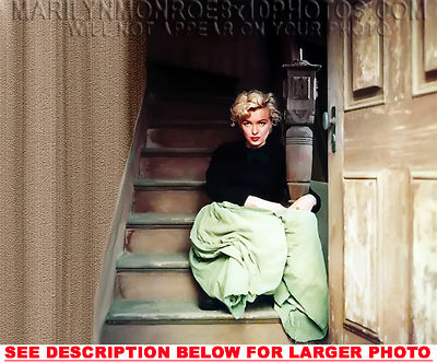 YOU ARE PURCHASING 1 CANDID & RARE MARILYN MONROE ON THE STAIRS (1) 8x10 FINE ART PHOTO The (1) 8x10 Candid & Fine Art Photo you will receive, (shown below) is from a Private Collection. COPYRIGHTS: (please see bottom of thispage) This Candid, One of a kind picture is Professionally photo-printed utilizing the GICLEE printing process onto GALERIE SmoothGloss Archival & Acid-free High Resolution Photo-Lab quality paper. As well, we use only Giclee pressheated Archival Printing Inks. This is Kodak's most expensive Ink, which creates higher & more vivid quality Photos & longer lasting prints than any other Photographic Ink in the world!! This Ultra Premium Kodak Super Color/Photo Gloss Pigment Based Printing Ink also shields photos from the key factors that lead to fading such as light, air, pollution, moisture and heat. This is due to the Spectacularly Innovative "colorlast" technology applied to this KodakPIGMENTInk, which allows your Photo to virtually resist any picture fading for at least 100 years. Meaning, the vibrant colors in the Photo you see below will be the exact same vibrant colors your descendants will see when viewing your Photo 100 years from now! NOTE PLEASE** WE ARE ALWAYS LISTING DIFFERENT MARILYN MONROE PHOTOS & PHOTO CREATIONS. IFYOU WOULD LIKE TO BE NOTIFIED THE NEXT TIME WE LIST MORE UNIQUE AND DIFFERENT PHOTOS OF MARILYN MONROE PLEASE EMAIL US  8x10 PHOTO#1  CLICK HERE TO VIEW MORE MARILYN MONROE 8x10PHOTOS!