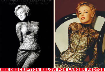 YOUARE PURCHASING 2 CANDID & RARE MARILYN MONROE PATTERN DRESS CURVES (2) 8x10 FINE ART PHOTOS The (2) 8x10 Candid & Fine Art Photos you will receive, (shown below) are from a Private Collection. COPYRIGHTS: (please see bottom of thispage) These Candid, One of a kind pictures are Professionally photo-printed utilizing the GICLEE printing process onto GALERIE SmoothGloss Archival & Acid-free High Resolution Photo-Lab quality paper. As well, we use only Giclee pressheated Archival Printing Inks. This is Kodak's most expensive Ink, which creates higher & more vivid quality Photos & longer lasting prints than any other Photographic Ink in the world!! This Ultra Premium Kodak Super Color/Photo Gloss Pigment Based Printing Ink also shields photos from the key factors that lead to fading such as light, air, pollution, moisture and heat. This is due to the Spectacularly Innovative "colorlast" technology applied to this KodakPIGMENTInk, which allows your Photos to virtually resist any picture fading for at least 100 years. Meaning, the vibrant colors in the Photos you see below will be the exact same vibrant colors your descendants will see when viewing your Photos 100 years from now! NOTE PLEASE** WE ARE ALWAYS LISTING DIFFERENT MARILYN MONROE PHOTOS & PHOTO CREATIONS. IFYOU WOULD LIKE TO BE NOTIFIED THE NEXT TIME WE LIST MORE UNIQUE AND DIFFERENT PHOTOS OF MARILYN MONROE PLEASE EMAIL US  8x10 PHOTO#1 8x10 PHOTO#2 CLICK HERE TO VIEW MORE MARILYN MONROE 8x10PHOTOS!