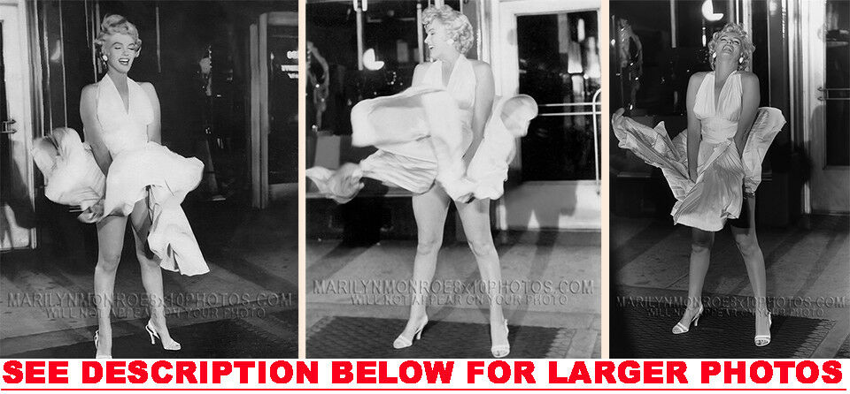 YOU ARE PURCHASING 3 CANDID & RARE MARILYN MONROE 7YI SUBWAY BLOWNGDRESS (3) 5X7 FINE ART PHOTOS The (3) 5X7 Candid & Fine Art Photos you will receive, (shown below) are from a Private Collection. COPYRIGHTS: (please see bottom of thispage) These Candid, One of a kind pictures are Professionally photo-printed utilizing the GICLEE printing process onto GALERIE SmoothGloss Archival & Acid-free High Resolution Photo-Lab quality paper. As well, we use only Giclee pressheated Archival Printing Inks. This is Kodak's most expensive Ink, which creates higher & more vivid quality Photos & longer lasting prints than any other Photographic Ink in the world!! This Ultra Premium Kodak Super Color/Photo Gloss Pigment Based Printing Ink also shields photos from the key factors that lead to fading such as light, air, pollution, moisture and heat. This is due to the Spectacularly Innovative "colorlast" technology applied to this KodakPIGMENTInk, which allows your Photos to virtually resist any picture fading for at least 100 years. Meaning, the vibrant colors in the Photos you see below will be the exact same vibrant colors your descendants will see when viewing your Photos 100 years from now! NOTE PLEASE** WE ARE ALWAYS LISTING DIFFERENT MARILYN MONROE PHOTOS & PHOTO CREATIONS. IFYOU WOULD LIKE TO BE NOTIFIED THE NEXT TIME WE LIST MORE UNIQUE AND DIFFERENT PHOTOS OF MARILYN MONROE PLEASE EMAIL US  5X7 PHOTO#1 5X7 PHOTO#2 5X7 PHOTO#3 CLICK HERE TO VIEW MORE MARILYN MONROE 5X7PHOTOS!