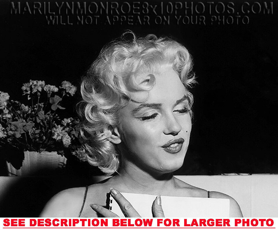 YOU ARE PURCHASING 1 CANDID & RARE MARILYN MONROE BEAUTY with EYESCLOSED (1) 8x10 FINE ART PHOTO The (1) 8x10 Candid & Fine Art Photo you will receive, (shown below) is from a Private Collection. COPYRIGHTS: (please see bottom of thispage) This Candid, One of a kind picture is Professionally photo-printed utilizing the GICLEE printing process onto GALERIE SmoothGloss Archival & Acid-free High Resolution Photo-Lab quality paper. As well, we use only Giclee pressheated Archival Printing Inks. This is Kodak's most expensive Ink, which creates higher & more vivid quality Photos & longer lasting prints than any other Photographic Ink in the world!! This Ultra Premium Kodak Super Color/Photo Gloss Pigment Based Printing Ink also shields photos from the key factors that lead to fading such as light, air, pollution, moisture and heat. This is due to the Spectacularly Innovative "colorlast" technology applied to this KodakPIGMENTInk, which allows your Photo to virtually resist any picture fading for at least 100 years. Meaning, the vibrant colors in the Photo you see below will be the exact same vibrant colors your descendants will see when viewing your Photo 100 years from now! NOTE PLEASE** WE ARE ALWAYS LISTING DIFFERENT MARILYN MONROE PHOTOS & PHOTO CREATIONS. IFYOU WOULD LIKE TO BE NOTIFIED THE NEXT TIME WE LIST MORE UNIQUE AND DIFFERENT PHOTOS OF MARILYN MONROE PLEASE EMAIL US  8x10 PHOTO#1 CLICK HERE TO VIEW MORE MARILYN MONROE 8x10PHOTOS!