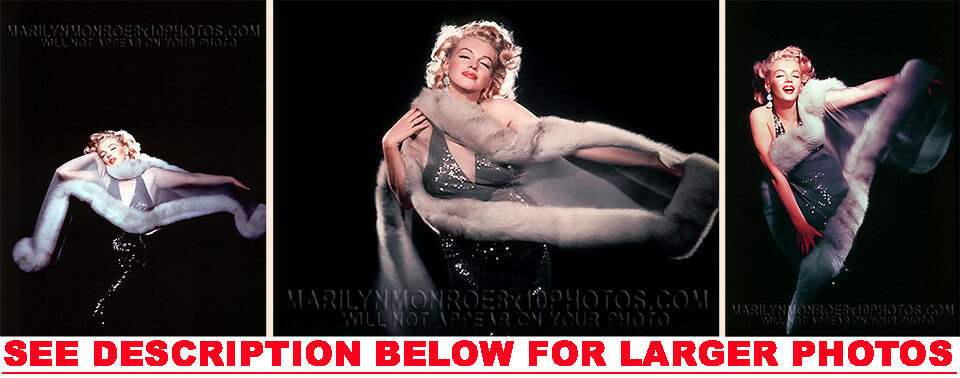 YOU ARE PURCHASING 3 CANDID & RARE MARILYN MONROE BEAUTY with FUR SHOOT (3) 5X7 FINE ART PHOTOS The (3) 5X7 Candid & Fine Art Photos you will receive, (shown below) are from a Private Collection. COPYRIGHTS: (please see bottom of thispage) These Candid, One of a kind pictures are Professionally photo-printed utilizing the GICLEE printing process onto GALERIE SmoothGloss Archival & Acid-free High Resolution Photo-Lab quality paper. As well, we use only Giclee pressheated Archival Printing Inks. This is Kodak's most expensive Ink, which creates higher & more vivid quality Photos & longer lasting prints than any other Photographic Ink in the world!! This Ultra Premium Kodak Super Color/Photo Gloss Pigment Based Printing Ink also shields photos from the key factors that lead to fading such as light, air, pollution, moisture and heat. This is due to the Spectacularly Innovative "colorlast" technology applied to this KodakPIGMENTInk, which allows your Photos to virtually resist any picture fading for at least 100 years. Meaning, the vibrant colors in the Photos you see below will be the exact same vibrant colors your descendants will see when viewing your Photos 100 years from now! NOTE PLEASE** WE ARE ALWAYS LISTING DIFFERENT MARILYN MONROE PHOTOS & PHOTO CREATIONS. IFYOU WOULD LIKE TO BE NOTIFIED THE NEXT TIME WE LIST MORE UNIQUE AND DIFFERENT PHOTOS OF MARILYN MONROE PLEASE EMAIL US  5X7 PHOTO#1 5X7 PHOTO#2 5X7 PHOTO#3 CLICK HERE TO VIEW MORE MARILYN MONROE 5X7PHOTOS!