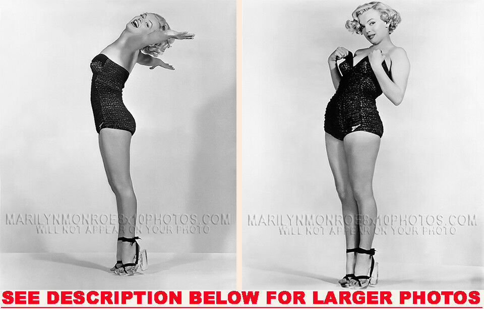 YOUARE PURCHASING 2 CANDID & RARE MARILYN MONROE BLACK SWIMSUIT SHOOT (2) 8x10 FINE ART PHOTOS The (2) 8x10 Candid & Fine Art Photos you will receive, (shown below) are from a Private Collection. COPYRIGHTS: (please see bottom of thispage) These Candid, One of a kind pictures are Professionally photo-printed utilizing the GICLEE printing process onto GALERIE SmoothGloss Archival & Acid-free High Resolution Photo-Lab quality paper. As well, we use only Giclee pressheated Archival Printing Inks. This is Kodak's most expensive Ink, which creates higher & more vivid quality Photos & longer lasting prints than any other Photographic Ink in the world!! This Ultra Premium Kodak Super Color/Photo Gloss Pigment Based Printing Ink also shields photos from the key factors that lead to fading such as light, air, pollution, moisture and heat. This is due to the Spectacularly Innovative "colorlast" technology applied to this KodakPIGMENTInk, which allows your Photos to virtually resist any picture fading for at least 100 years. Meaning, the vibrant colors in the Photos you see below will be the exact same vibrant colors your descendants will see when viewing your Photos 100 years from now! NOTE PLEASE** WE ARE ALWAYS LISTING DIFFERENT MARILYN MONROE PHOTOS & PHOTO CREATIONS. IFYOU WOULD LIKE TO BE NOTIFIED THE NEXT TIME WE LIST MORE UNIQUE AND DIFFERENT PHOTOS OF MARILYN MONROE PLEASE EMAIL US  8x10 PHOTO#1  8x10 PHOTO#2  CLICK HERE TO VIEW MORE MARILYN MONROE 8x10PHOTOS!