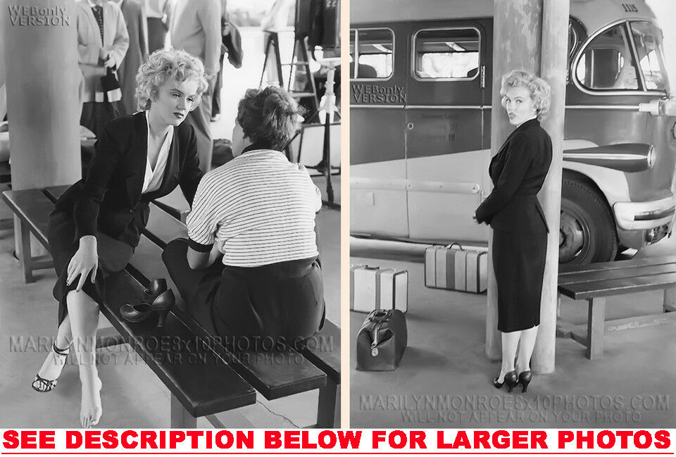 YOUARE PURCHASING 2 CANDID & RARE MARILYN MONROE BUS STOP BEAUTY (2) 8x10 FINE ART PHOTOS The (2) 8x10 Candid & Fine Art Photos you will receive, (shown below) are from a Private Collection. COPYRIGHTS: (please see bottom of thispage) These Candid, One of a kind pictures are Professionally photo-printed utilizing the GICLEE printing process onto GALERIE SmoothGloss Archival & Acid-free High Resolution Photo-Lab quality paper. As well, we use only Giclee pressheated Archival Printing Inks. This is Kodak's most expensive Ink, which creates higher & more vivid quality Photos & longer lasting prints than any other Photographic Ink in the world!! This Ultra Premium Kodak Super Color/Photo Gloss Pigment Based Printing Ink also shields photos from the key factors that lead to fading such as light, air, pollution, moisture and heat. This is due to the Spectacularly Innovative "colorlast" technology applied to this KodakPIGMENTInk, which allows your Photos to virtually resist any picture fading for at least 100 years. Meaning, the vibrant colors in the Photos you see below will be the exact same vibrant colors your descendants will see when viewing your Photos 100 years from now! NOTE PLEASE** WE ARE ALWAYS LISTING DIFFERENT MARILYN MONROE PHOTOS & PHOTO CREATIONS. IFYOU WOULD LIKE TO BE NOTIFIED THE NEXT TIME WE LIST MORE UNIQUE AND DIFFERENT PHOTOS OF MARILYN MONROE PLEASE EMAIL US  8x10 PHOTO#1 8x10 PHOTO#2 CLICK HERE TO VIEW MORE MARILYN MONROE 8x10PHOTOS!