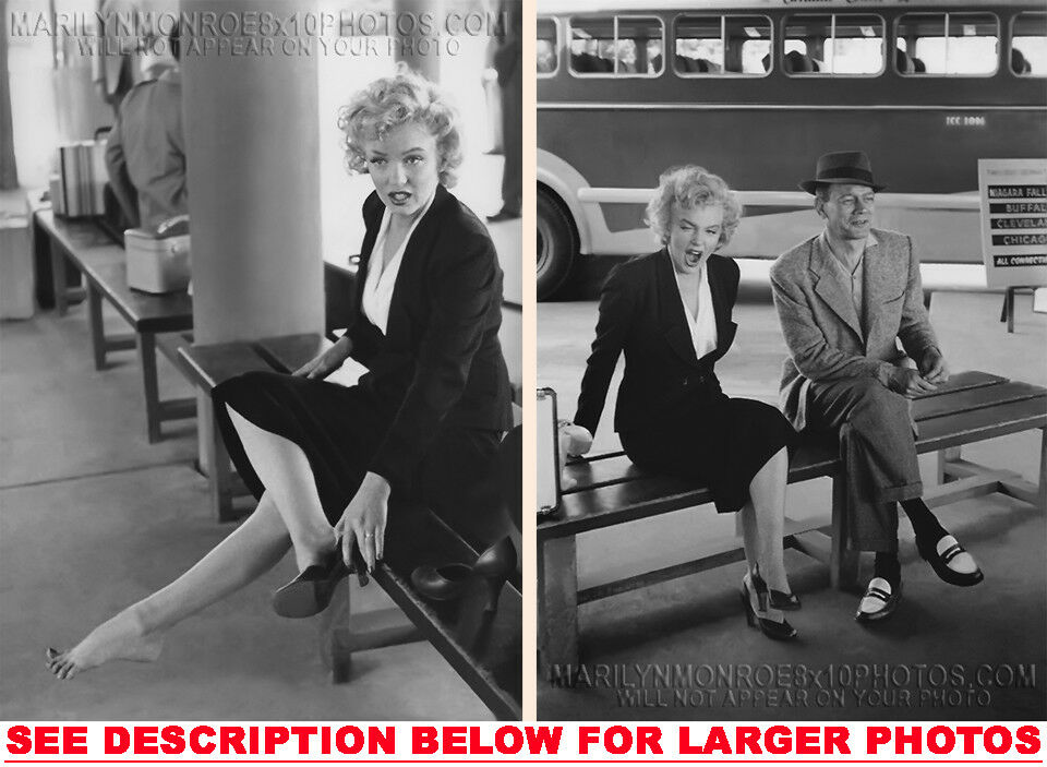 YOUARE PURCHASING 2 CANDID & RARE MARILYN MONROE BUS STOP REST (2) 8x10 FINE ART PHOTOS The (2) 8x10 Candid & Fine Art Photos you will receive, (shown below) are from a Private Collection. COPYRIGHTS: (please see bottom of thispage) These Candid, One of a kind pictures are Professionally photo-printed utilizing the GICLEE printing process onto GALERIE SmoothGloss Archival & Acid-free High Resolution Photo-Lab quality paper. As well, we use only Giclee pressheated Archival Printing Inks. This is Kodak's most expensive Ink, which creates higher & more vivid quality Photos & longer lasting prints than any other Photographic Ink in the world!! This Ultra Premium Kodak Super Color/Photo Gloss Pigment Based Printing Ink also shields photos from the key factors that lead to fading such as light, air, pollution, moisture and heat. This is due to the Spectacularly Innovative "colorlast" technology applied to this KodakPIGMENTInk, which allows your Photos to virtually resist any picture fading for at least 100 years. Meaning, the vibrant colors in the Photos you see below will be the exact same vibrant colors your descendants will see when viewing your Photos 100 years from now! NOTE PLEASE** WE ARE ALWAYS LISTING DIFFERENT MARILYN MONROE PHOTOS & PHOTO CREATIONS. IFYOU WOULD LIKE TO BE NOTIFIED THE NEXT TIME WE LIST MORE UNIQUE AND DIFFERENT PHOTOS OF MARILYN MONROE PLEASE EMAIL US  8x10 PHOTO#1 8x10 PHOTO#2 CLICK HERE TO VIEW MORE MARILYN MONROE 8x10PHOTOS!
