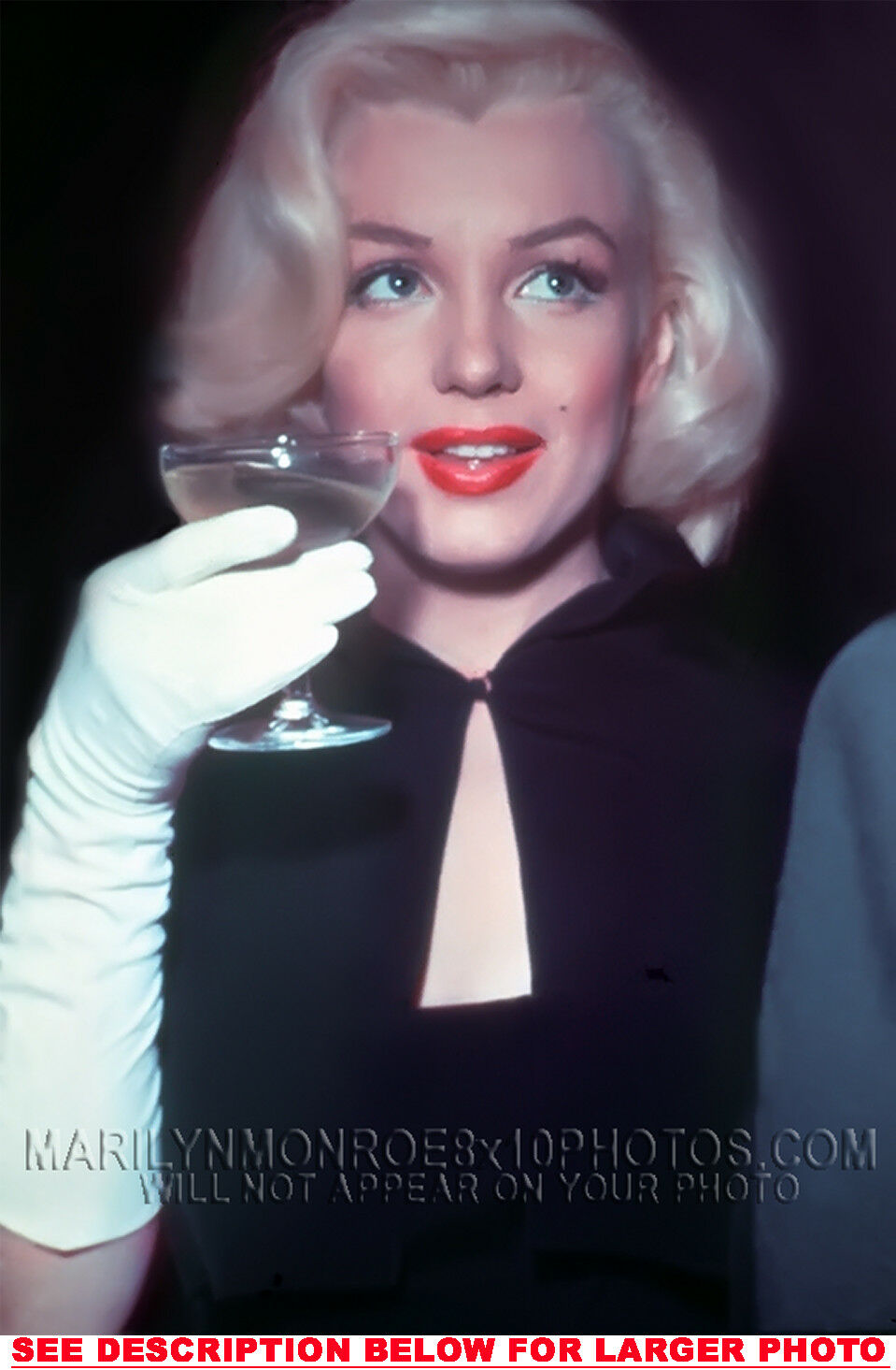 YOU ARE PURCHASING 1 CANDID & RARE MARILYN MONROE CHAMPAGNE n WHITEGLOVE (1) 5X7 FINE ART PHOTO The (1) 5X7 Candid & Fine Art Photo you will receive, (shown below) is from a Private Collection. COPYRIGHTS: (please see bottom of thispage) This Candid, One of a kind picture is Professionally photo-printed utilizing the GICLEE printing process onto GALERIE SmoothGloss Archival & Acid-free High Resolution Photo-Lab quality paper. As well, we use only Giclee pressheated Archival Printing Inks. This is Kodak's most expensive Ink, which creates higher & more vivid quality Photos & longer lasting prints than any other Photographic Ink in the world!! This Ultra Premium Kodak Super Color/Photo Gloss Pigment Based Printing Ink also shields photos from the key factors that lead to fading such as light, air, pollution, moisture and heat. This is due to the Spectacularly Innovative "colorlast" technology applied to this KodakPIGMENTInk, which allows your Photo to virtually resist any picture fading for at least 100 years. Meaning, the vibrant colors in the Photo you see below will be the exact same vibrant colors your descendants will see when viewing your Photo 100 years from now! NOTE PLEASE** WE ARE ALWAYS LISTING DIFFERENT MARILYN MONROE PHOTOS & PHOTO CREATIONS. IFYOU WOULD LIKE TO BE NOTIFIED THE NEXT TIME WE LIST MORE UNIQUE AND DIFFERENT PHOTOS OF MARILYN MONROE PLEASE EMAIL US  5X7 PHOTO#1 CLICK HERE TO VIEW MORE MARILYN MONROE 5X7PHOTOS!