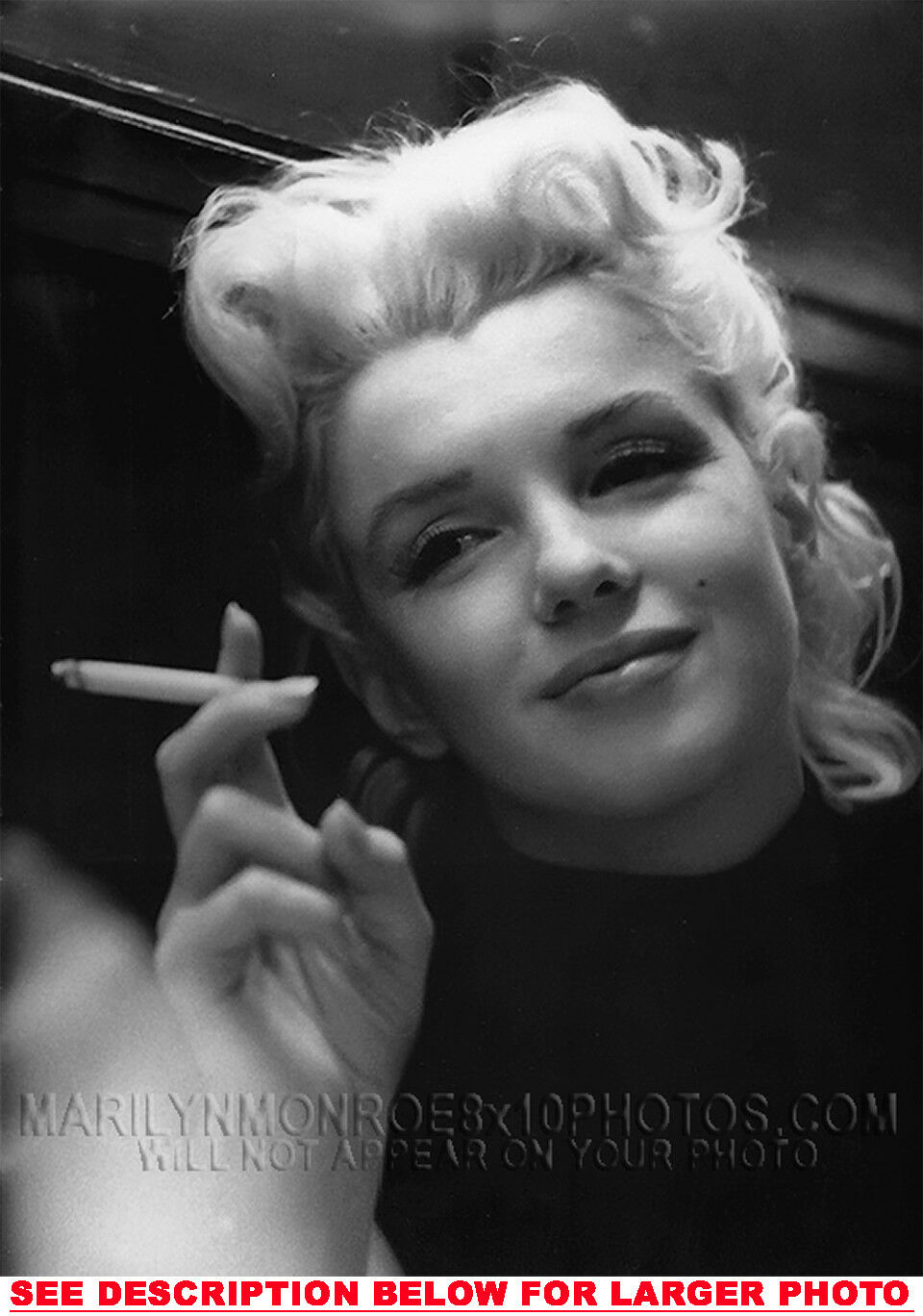 YOU ARE PURCHASING 1 CANDID & RARE MARILYN MONROE CIGARETTE IN HAND (1) 5X7 FINE ART PHOTO The (1) 5X7 Candid & Fine Art Photo you will receive, (shown below) is from a Private Collection. COPYRIGHTS: (please see bottom of thispage) This Candid, One of a kind picture is Professionally photo-printed utilizing the GICLEE printing process onto GALERIE SmoothGloss Archival & Acid-free High Resolution Photo-Lab quality paper. As well, we use only Giclee pressheated Archival Printing Inks. This is Kodak's most expensive Ink, which creates higher & more vivid quality Photos & longer lasting prints than any other Photographic Ink in the world!! This Ultra Premium Kodak Super Color/Photo Gloss Pigment Based Printing Ink also shields photos from the key factors that lead to fading such as light, air, pollution, moisture and heat. This is due to the Spectacularly Innovative "colorlast" technology applied to this KodakPIGMENTInk, which allows your Photo to virtually resist any picture fading for at least 100 years. Meaning, the vibrant colors in the Photo you see below will be the exact same vibrant colors your descendants will see when viewing your Photo 100 years from now! NOTE PLEASE** WE ARE ALWAYS LISTING DIFFERENT MARILYN MONROE PHOTOS & PHOTO CREATIONS. IFYOU WOULD LIKE TO BE NOTIFIED THE NEXT TIME WE LIST MORE UNIQUE AND DIFFERENT PHOTOS OF MARILYN MONROE PLEASE EMAIL US  5X7 PHOTO#1 CLICK HERE TO VIEW MORE MARILYN MONROE 5X7PHOTOS!