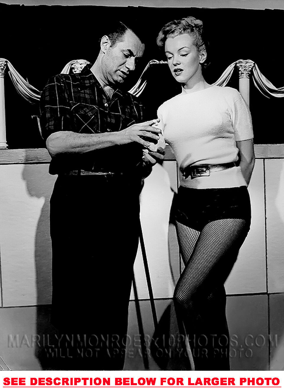 YOU ARE PURCHASING 1 CANDID & RARE MARILYN MONROE DANCE INSTRUCTOR CHAT (1) 8x10 FINE ART PHOTO The (1) 8x10 Candid & Fine Art Photo you will receive, (shown below) is from a Private Collection. COPYRIGHTS: (please see bottom of thispage) This Candid, One of a kind picture is Professionally photo-printed utilizing the GICLEE printing process onto GALERIE SmoothGloss Archival & Acid-free High Resolution Photo-Lab quality paper. As well, we use only Giclee pressheated Archival Printing Inks. This is Kodak's most expensive Ink, which creates higher & more vivid quality Photos & longer lasting prints than any other Photographic Ink in the world!! This Ultra Premium Kodak Super Color/Photo Gloss Pigment Based Printing Ink also shields photos from the key factors that lead to fading such as light, air, pollution, moisture and heat. This is due to the Spectacularly Innovative "colorlast" technology applied to this KodakPIGMENTInk, which allows your Photo to virtually resist any picture fading for at least 100 years. Meaning, the vibrant colors in the Photo you see below will be the exact same vibrant colors your descendants will see when viewing your Photo 100 years from now! NOTE PLEASE** WE ARE ALWAYS LISTING DIFFERENT MARILYN MONROE PHOTOS & PHOTO CREATIONS. IFYOU WOULD LIKE TO BE NOTIFIED THE NEXT TIME WE LIST MORE UNIQUE AND DIFFERENT PHOTOS OF MARILYN MONROE PLEASE EMAIL US  8x10 PHOTO#1 CLICK HERE TO VIEW MORE MARILYN MONROE 8x10PHOTOS!
