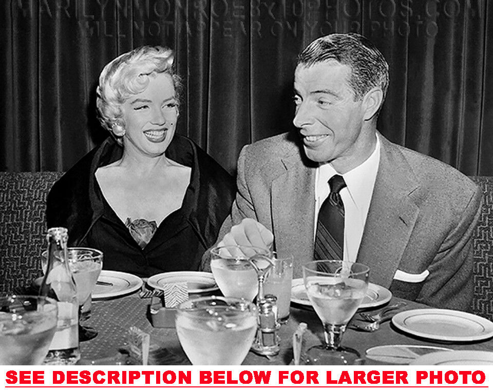 YOU ARE PURCHASING 1 CANDID & RARE MARILYN MONROE DINNER with JOE (1) 8x10 FINE ART PHOTO The (1) 8x10 Candid & Fine Art Photo you will receive, (shown below) is from a Private Collection. COPYRIGHTS: (please see bottom of thispage) This Candid, One of a kind picture is Professionally photo-printed utilizing the GICLEE printing process onto GALERIE SmoothGloss Archival & Acid-free High Resolution Photo-Lab quality paper. As well, we use only Giclee pressheated Archival Printing Inks. This is Kodak's most expensive Ink, which creates higher & more vivid quality Photos & longer lasting prints than any other Photographic Ink in the world!! This Ultra Premium Kodak Super Color/Photo Gloss Pigment Based Printing Ink also shields photos from the key factors that lead to fading such as light, air, pollution, moisture and heat. This is due to the Spectacularly Innovative "colorlast" technology applied to this KodakPIGMENTInk, which allows your Photo to virtually resist any picture fading for at least 100 years. Meaning, the vibrant colors in the Photo you see below will be the exact same vibrant colors your descendants will see when viewing your Photo 100 years from now! NOTE PLEASE** WE ARE ALWAYS LISTING DIFFERENT MARILYN MONROE PHOTOS & PHOTO CREATIONS. IFYOU WOULD LIKE TO BE NOTIFIED THE NEXT TIME WE LIST MORE UNIQUE AND DIFFERENT PHOTOS OF MARILYN MONROE PLEASE EMAIL US  8x10 PHOTO#1 CLICK HERE TO VIEW MORE MARILYN MONROE 8x10PHOTOS!