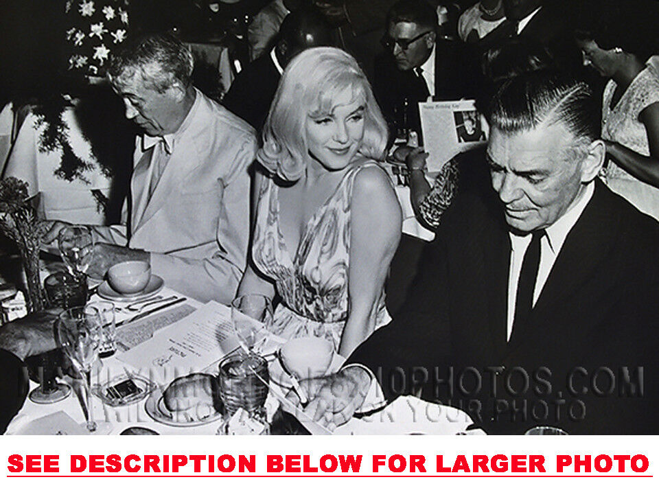 YOU ARE PURCHASING 1 CANDID & RARE MARILYN MONROE DINNER withCLARK GABLE (1) 5X7 FINE ART PHOTO The (1) 5X7 Candid & Fine Art Photo you will receive, (shown below) is from a Private Collection. COPYRIGHTS: (please see bottom of thispage) This Candid, One of a kind picture is Professionally photo-printed utilizing the GICLEE printing process onto GALERIE SmoothGloss Archival & Acid-free High Resolution Photo-Lab quality paper. As well, we use only Giclee pressheated Archival Printing Inks. This is Kodak's most expensive Ink, which creates higher & more vivid quality Photos & longer lasting prints than any other Photographic Ink in the world!! This Ultra Premium Kodak Super Color/Photo Gloss Pigment Based Printing Ink also shields photos from the key factors that lead to fading such as light, air, pollution, moisture and heat. This is due to the Spectacularly Innovative "colorlast" technology applied to this KodakPIGMENTInk, which allows your Photo to virtually resist any picture fading for at least 100 years. Meaning, the vibrant colors in the Photo you see below will be the exact same vibrant colors your descendants will see when viewing your Photo 100 years from now! NOTE PLEASE** WE ARE ALWAYS LISTING DIFFERENT MARILYN MONROE PHOTOS & PHOTO CREATIONS. IFYOU WOULD LIKE TO BE NOTIFIED THE NEXT TIME WE LIST MORE UNIQUE AND DIFFERENT PHOTOS OF MARILYN MONROE PLEASE EMAIL US  5X7 PHOTO#1 CLICK HERE TO VIEW MORE MARILYN MONROE 5X7PHOTOS!