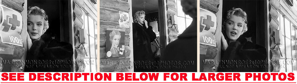 YOU ARE PURCHASING 3 CANDID & RARE MARILYN MONROE FIRSTAID CABIN in FUR (3) 5X7 FINE ART PHOTOS The (3) 5X7 Candid & Fine Art Photos you will receive, (shown below) are from a Private Collection. COPYRIGHTS: (please see bottom of thispage) These Candid, One of a kind pictures are Professionally photo-printed utilizing the GICLEE printing process onto GALERIE SmoothGloss Archival & Acid-free High Resolution Photo-Lab quality paper. As well, we use only Giclee pressheated Archival Printing Inks. This is Kodak's most expensive Ink, which creates higher & more vivid quality Photos & longer lasting prints than any other Photographic Ink in the world!! This Ultra Premium Kodak Super Color/Photo Gloss Pigment Based Printing Ink also shields photos from the key factors that lead to fading such as light, air, pollution, moisture and heat. This is due to the Spectacularly Innovative "colorlast" technology applied to this KodakPIGMENTInk, which allows your Photos to virtually resist any picture fading for at least 100 years. Meaning, the vibrant colors in the Photos you see below will be the exact same vibrant colors your descendants will see when viewing your Photos 100 years from now! NOTE PLEASE** WE ARE ALWAYS LISTING DIFFERENT MARILYN MONROE PHOTOS & PHOTO CREATIONS. IFYOU WOULD LIKE TO BE NOTIFIED THE NEXT TIME WE LIST MORE UNIQUE AND DIFFERENT PHOTOS OF MARILYN MONROE PLEASE EMAIL US  5X7 PHOTO#1 5X7 PHOTO#2 5X7 PHOTO#3 CLICK HERE TO VIEW MORE MARILYN MONROE 5X7PHOTOS!