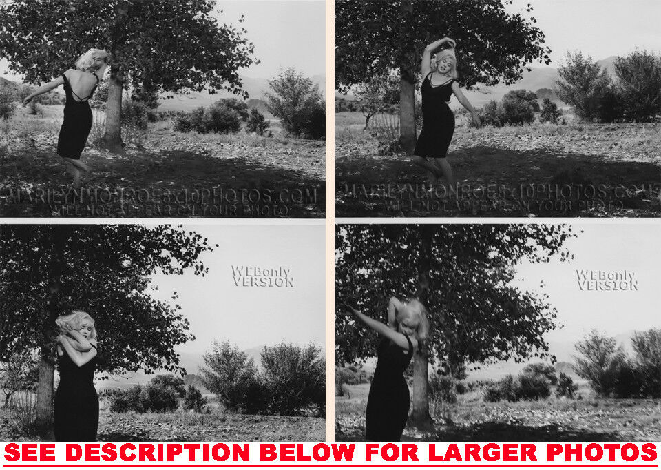 YOUARE PURCHASING 2 CANDID & RARE MARILYN MONROE FROLICKINGintheWOODS (2) 8x10 FINE ART PHOTOS The (2) 8x10 Candid & Fine Art Photos you will receive, (shown below) are from a Private Collection. COPYRIGHTS: (please see bottom of thispage) These Candid, One of a kind pictures are Professionally photo-printed utilizing the GICLEE printing process onto GALERIE SmoothGloss Archival & Acid-free High Resolution Photo-Lab quality paper. As well, we use only Giclee pressheated Archival Printing Inks. This is Kodak's most expensive Ink, which creates higher & more vivid quality Photos & longer lasting prints than any other Photographic Ink in the world!! This Ultra Premium Kodak Super Color/Photo Gloss Pigment Based Printing Ink also shields photos from the key factors that lead to fading such as light, air, pollution, moisture and heat. This is due to the Spectacularly Innovative "colorlast" technology applied to this KodakPIGMENTInk, which allows your Photos to virtually resist any picture fading for at least 100 years. Meaning, the vibrant colors in the Photos you see below will be the exact same vibrant colors your descendants will see when viewing your Photos 100 years from now! NOTE PLEASE** WE ARE ALWAYS LISTING DIFFERENT MARILYN MONROE PHOTOS & PHOTO CREATIONS. IFYOU WOULD LIKE TO BE NOTIFIED THE NEXT TIME WE LIST MORE UNIQUE AND DIFFERENT PHOTOS OF MARILYN MONROE PLEASE EMAIL US  8x10 PHOTO#1 8x10 PHOTO#2 CLICK HERE TO VIEW MORE MARILYN MONROE 8x10PHOTOS!