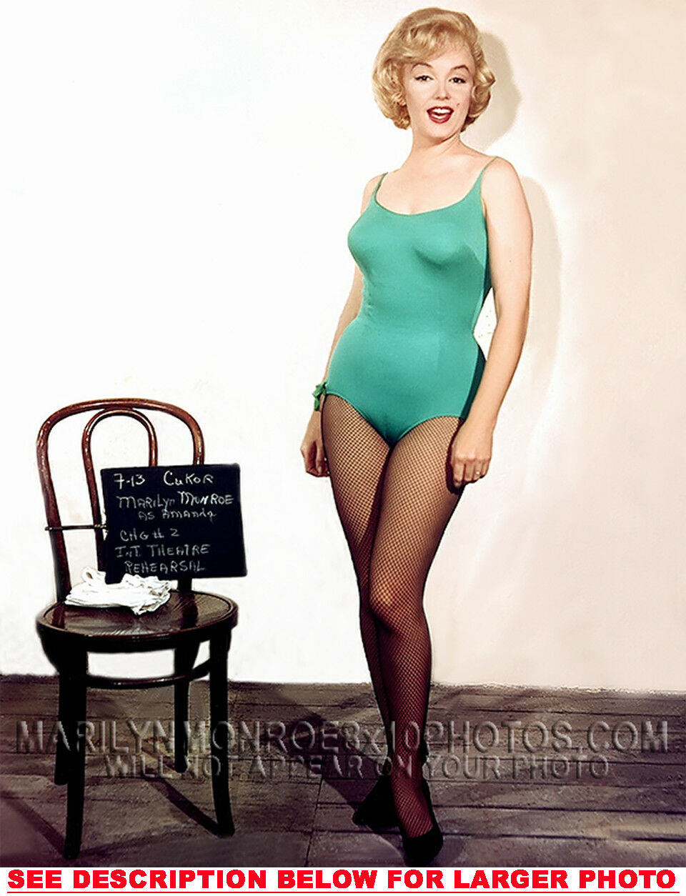 YOU ARE PURCHASING 1 CANDID & RARE MARILYN MONROE GREEN SPANDEX TESTSHOT (1) 8x10 FINE ART PHOTO The (1) 8x10 Candid & Fine Art Photo you will receive, (shown below) is from a Private Collection. COPYRIGHTS: (please see bottom of thispage) This Candid, One of a kind picture is Professionally photo-printed utilizing the GICLEE printing process onto GALERIE SmoothGloss Archival & Acid-free High Resolution Photo-Lab quality paper. As well, we use only Giclee pressheated Archival Printing Inks. This is Kodak's most expensive Ink, which creates higher & more vivid quality Photos & longer lasting prints than any other Photographic Ink in the world!! This Ultra Premium Kodak Super Color/Photo Gloss Pigment Based Printing Ink also shields photos from the key factors that lead to fading such as light, air, pollution, moisture and heat. This is due to the Spectacularly Innovative "colorlast" technology applied to this KodakPIGMENTInk, which allows your Photo to virtually resist any picture fading for at least 100 years. Meaning, the vibrant colors in the Photo you see below will be the exact same vibrant colors your descendants will see when viewing your Photo 100 years from now! NOTE PLEASE** WE ARE ALWAYS LISTING DIFFERENT MARILYN MONROE PHOTOS & PHOTO CREATIONS. IFYOU WOULD LIKE TO BE NOTIFIED THE NEXT TIME WE LIST MORE UNIQUE AND DIFFERENT PHOTOS OF MARILYN MONROE PLEASE EMAIL US  8x10 PHOTO#1 CLICK HERE TO VIEW MORE MARILYN MONROE 8x10PHOTOS!