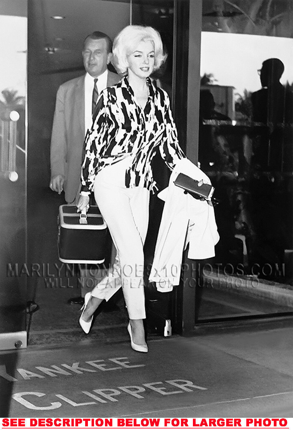 YOU ARE PURCHASING 1 CANDID & RARE MARILYN MONROE HOTEL EXIT (1) 5X7 FINE ART PHOTO The (1) 5X7 Candid & Fine Art Photo you will receive, (shown below) is from a Private Collection. COPYRIGHTS: (please see bottom of thispage) This Candid, One of a kind picture is Professionally photo-printed utilizing the GICLEE printing process onto GALERIE SmoothGloss Archival & Acid-free High Resolution Photo-Lab quality paper. As well, we use only Giclee pressheated Archival Printing Inks. This is Kodak's most expensive Ink, which creates higher & more vivid quality Photos & longer lasting prints than any other Photographic Ink in the world!! This Ultra Premium Kodak Super Color/Photo Gloss Pigment Based Printing Ink also shields photos from the key factors that lead to fading such as light, air, pollution, moisture and heat. This is due to the Spectacularly Innovative "colorlast" technology applied to this KodakPIGMENTInk, which allows your Photo to virtually resist any picture fading for at least 100 years. Meaning, the vibrant colors in the Photo you see below will be the exact same vibrant colors your descendants will see when viewing your Photo 100 years from now! NOTE PLEASE** WE ARE ALWAYS LISTING DIFFERENT MARILYN MONROE PHOTOS & PHOTO CREATIONS. IFYOU WOULD LIKE TO BE NOTIFIED THE NEXT TIME WE LIST MORE UNIQUE AND DIFFERENT PHOTOS OF MARILYN MONROE PLEASE US  5X7 PHOTO#1 CLICK HERE TO VIEW MORE MARILYN MONROE 5X7PHOTOS!