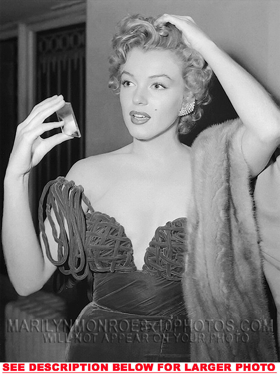YOU ARE PURCHASING 1 CANDID & RARE MARILYN MONROE HOW DO I LOOK? (1) 5X7 FINE ART PHOTO The (1) 5X7 Candid & Fine Art Photo you will receive, (shown below) is from a Private Collection. COPYRIGHTS: (please see bottom of thispage) This Candid, One of a kind picture is Professionally photo-printed utilizing the GICLEE printing process onto GALERIE SmoothGloss Archival & Acid-free High Resolution Photo-Lab quality paper. As well, we use only Giclee pressheated Archival Printing Inks. This is Kodak's most expensive Ink, which creates higher & more vivid quality Photos & longer lasting prints than any other Photographic Ink in the world!! This Ultra Premium Kodak Super Color/Photo Gloss Pigment Based Printing Ink also shields photos from the key factors that lead to fading such as light, air, pollution, moisture and heat. This is due to the Spectacularly Innovative "colorlast" technology applied to this KodakPIGMENTInk, which allows your Photo to virtually resist any picture fading for at least 100 years. Meaning, the vibrant colors in the Photo you see below will be the exact same vibrant colors your descendants will see when viewing your Photo 100 years from now! NOTE PLEASE** WE ARE ALWAYS LISTING DIFFERENT MARILYN MONROE PHOTOS & PHOTO CREATIONS. IFYOU WOULD LIKE TO BE NOTIFIED THE NEXT TIME WE LIST MORE UNIQUE AND DIFFERENT PHOTOS OF MARILYN MONROE PLEASE EMAIL US  5X7 PHOTO#1 CLICK HERE TO VIEW MORE MARILYN MONROE 5X7PHOTOS!