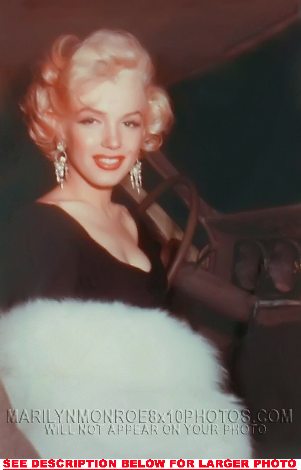 YOU ARE PURCHASING 1 CANDID & RARE MARILYN MONROE IN CAR with WHITE STOLE (1) 8x10 FINE ART PHOTO The (1) 8x10 Candid & Fine Art Photo you will receive, (shown below) is from a Private Collection. COPYRIGHTS: (please see bottom of thispage) This Candid, One of a kind picture is Professionally photo-printed utilizing the GICLEE printing process onto GALERIE SmoothGloss Archival & Acid-free High Resolution Photo-Lab quality paper. As well, we use only Giclee pressheated Archival Printing Inks. This is Kodak's most expensive Ink, which creates higher & more vivid quality Photos & longer lasting prints than any other Photographic Ink in the world!! This Ultra Premium Kodak Super Color/Photo Gloss Pigment Based Printing Ink also shields photos from the key factors that lead to fading such as light, air, pollution, moisture and heat. This is due to the Spectacularly Innovative "colorlast" technology applied to this KodakPIGMENTInk, which allows your Photo to virtually resist any picture fading for at least 100 years. Meaning, the vibrant colors in the Photo you see below will be the exact same vibrant colors your descendants will see when viewing your Photo 100 years from now! NOTE PLEASE** WE ARE ALWAYS LISTING DIFFERENT MARILYN MONROE PHOTOS & PHOTO CREATIONS. IFYOU WOULD LIKE TO BE NOTIFIED THE NEXT TIME WE LIST MORE UNIQUE AND DIFFERENT PHOTOS OF MARILYN MONROE PLEASE EMAIL US  8x10 PHOTO#1 CLICK HERE TO VIEW MORE MARILYN MONROE 8x10PHOTOS!