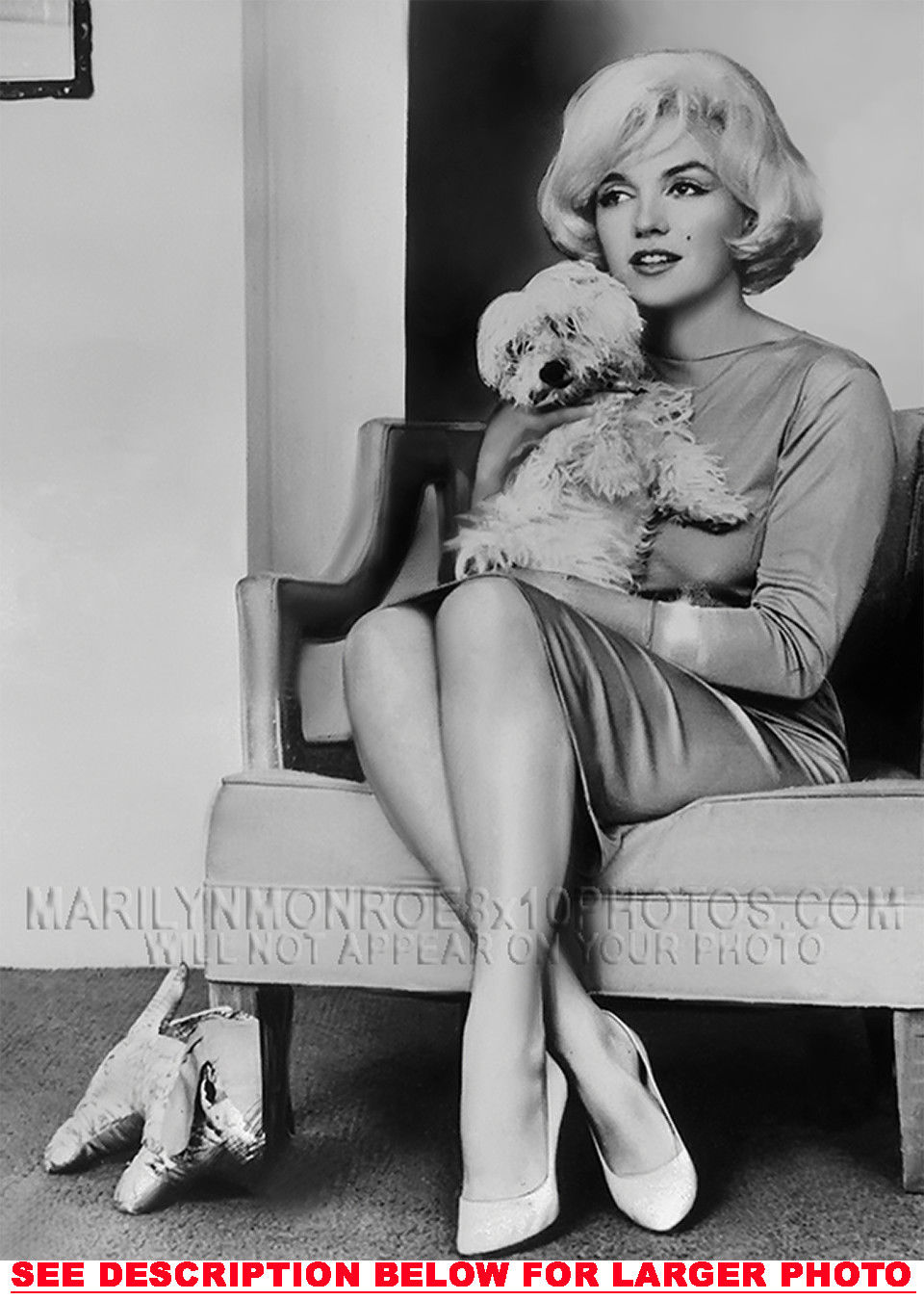 YOU ARE PURCHASING 1 CANDID & RARE MARILYN MONROE INTERVIEW with DOGGIE (1) 5X7 FINE ART PHOTO The (1) 5X7 Candid & Fine Art Photo you will receive, (shown below) is from a Private Collection. COPYRIGHTS: (please see bottom of thispage) This Candid, One of a kind picture is Professionally photo-printed utilizing the GICLEE printing process onto GALERIE SmoothGloss Archival & Acid-free High Resolution Photo-Lab quality paper. As well, we use only Giclee pressheated Archival Printing Inks. This is Kodak's most expensive Ink, which creates higher & more vivid quality Photos & longer lasting prints than any other Photographic Ink in the world!! This Ultra Premium Kodak Super Color/Photo Gloss Pigment Based Printing Ink also shields photos from the key factors that lead to fading such as light, air, pollution, moisture and heat. This is due to the Spectacularly Innovative "colorlast" technology applied to this KodakPIGMENTInk, which allows your Photo to virtually resist any picture fading for at least 100 years. Meaning, the vibrant colors in the Photo you see below will be the exact same vibrant colors your descendants will see when viewing your Photo 100 years from now! NOTE PLEASE** WE ARE ALWAYS LISTING DIFFERENT MARILYN MONROE PHOTOS & PHOTO CREATIONS. IFYOU WOULD LIKE TO BE NOTIFIED THE NEXT TIME WE LIST MORE UNIQUE AND DIFFERENT PHOTOS OF MARILYN MONROE PLEASE US  5X7 PHOTO#1 CLICK HERE TO VIEW MORE MARILYN MONROE 5X7PHOTOS!