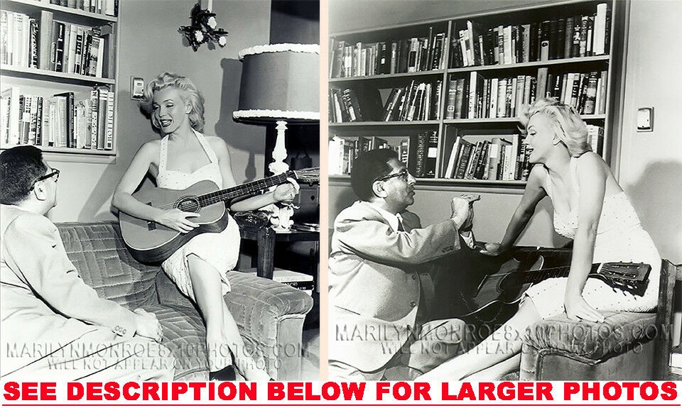 YOUARE PURCHASING 2 CANDID & RARE MARILYN MONROE LEARNING the GUITAR (2) 8x10 FINE ART PHOTOS The (2) 8x10 Candid & Fine Art Photos you will receive, (shown below) are from a Private Collection. COPYRIGHTS: (please see bottom of thispage) These Candid, One of a kind pictures are Professionally photo-printed utilizing the GICLEE printing process onto GALERIE SmoothGloss Archival & Acid-free High Resolution Photo-Lab quality paper. As well, we use only Giclee pressheated Archival Printing Inks. This is Kodak's most expensive Ink, which creates higher & more vivid quality Photos & longer lasting prints than any other Photographic Ink in the world!! This Ultra Premium Kodak Super Color/Photo Gloss Pigment Based Printing Ink also shields photos from the key factors that lead to fading such as light, air, pollution, moisture and heat. This is due to the Spectacularly Innovative "colorlast" technology applied to this KodakPIGMENTInk, which allows your Photos to virtually resist any picture fading for at least 100 years. Meaning, the vibrant colors in the Photos you see below will be the exact same vibrant colors your descendants will see when viewing your Photos 100 years from now! NOTE PLEASE** WE ARE ALWAYS LISTING DIFFERENT MARILYN MONROE PHOTOS & PHOTO CREATIONS. IFYOU WOULD LIKE TO BE NOTIFIED THE NEXT TIME WE LIST MORE UNIQUE AND DIFFERENT PHOTOS OF MARILYN MONROE PLEASE EMAIL US  8x10 PHOTO#1 8x10 PHOTO#2 CLICK HERE TO VIEW MORE MARILYN MONROE 8x10PHOTOS!