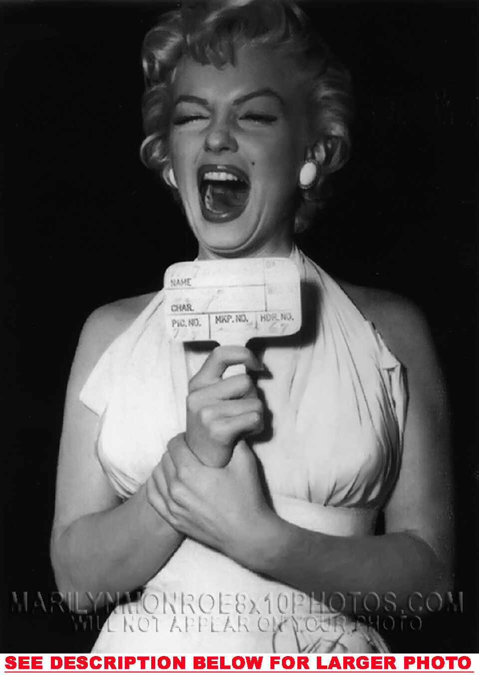 YOU ARE PURCHASING 1 CANDID & RARE MARILYN MONROE LOL TEST (1) 8x10 FINE ART PHOTO The (1) 8x10 Candid & Fine Art Photo you will receive, (shown below) is from a Private Collection. COPYRIGHTS: (please see bottom of thispage) This Candid, One of a kind picture is Professionally photo-printed utilizing the GICLEE printing process onto GALERIE SmoothGloss Archival & Acid-free High Resolution Photo-Lab quality paper. As well, we use only Giclee pressheated Archival Printing Inks. This is Kodak's most expensive Ink, which creates higher & more vivid quality Photos & longer lasting prints than any other Photographic Ink in the world!! This Ultra Premium Kodak Super Color/Photo Gloss Pigment Based Printing Ink also shields photos from the key factors that lead to fading such as light, air, pollution, moisture and heat. This is due to the Spectacularly Innovative "colorlast" technology applied to this KodakPIGMENTInk, which allows your Photo to virtually resist any picture fading for at least 100 years. Meaning, the vibrant colors in the Photo you see below will be the exact same vibrant colors your descendants will see when viewing your Photo 100 years from now! NOTE PLEASE** WE ARE ALWAYS LISTING DIFFERENT MARILYN MONROE PHOTOS & PHOTO CREATIONS. IFYOU WOULD LIKE TO BE NOTIFIED THE NEXT TIME WE LIST MORE UNIQUE AND DIFFERENT PHOTOS OF MARILYN MONROE PLEASE EMAIL US  8x10 PHOTO#1 CLICK HERE TO VIEW MORE MARILYN MONROE 8x10PHOTOS!